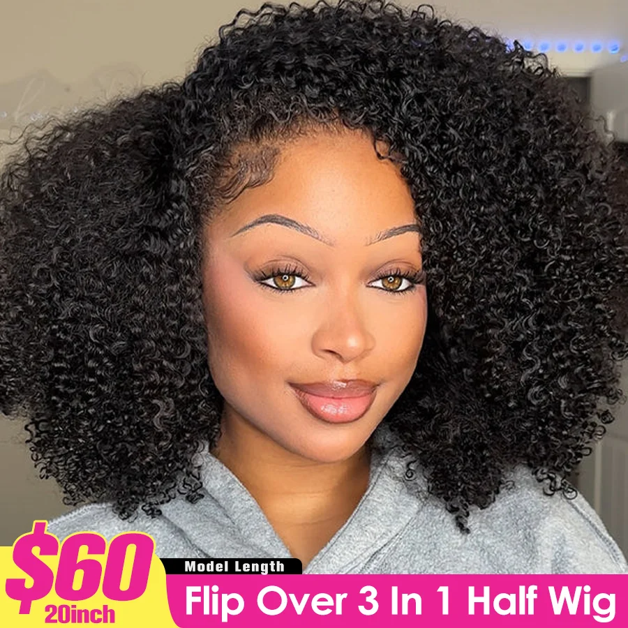 250% Half Wig Human Hair Kinky Curly Human Hair Wigs Flip Over 3 In 1 Half Wig Afro Curly Headband Wig 300% Full Hair Wigs Sale