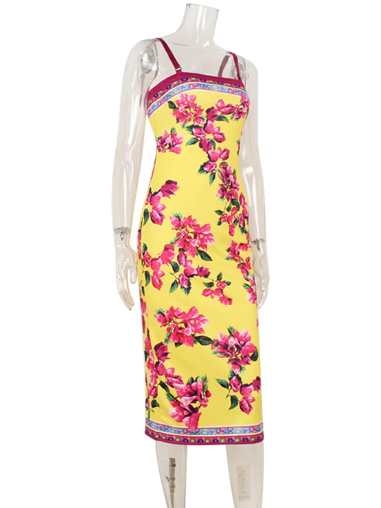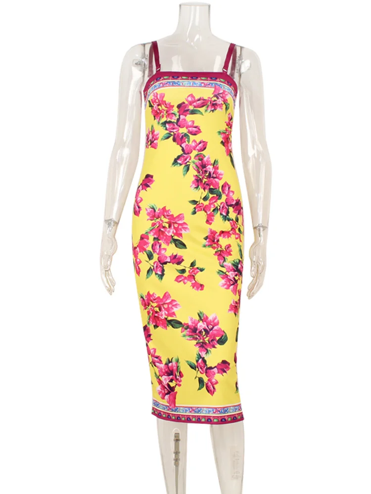 CNYISHE Flower Prints Camisoles Fashion Sheath Sexy Club Hot Girl Women Dresses Colorful Trendy Elegant Lady Female Bodycon