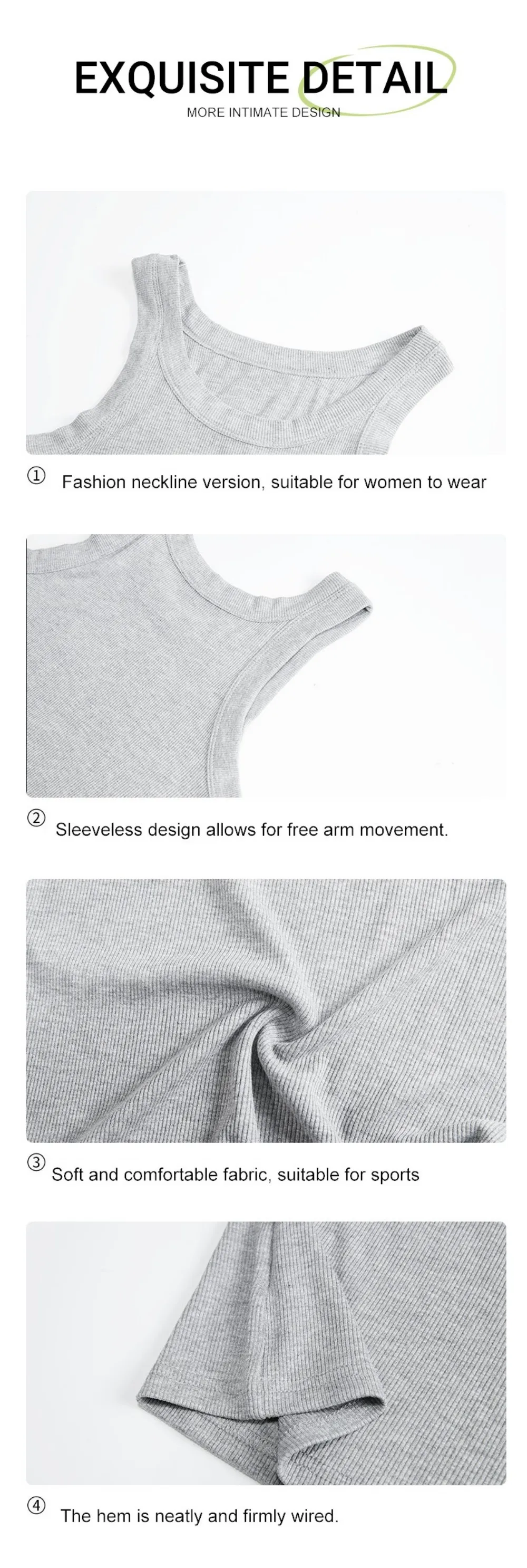 Cotton Solid Tank Top Women Sleeveless Tight Ribbed White Fashion Knit Vest Straps Summer Casual Fitness Sporty Basic Clothing