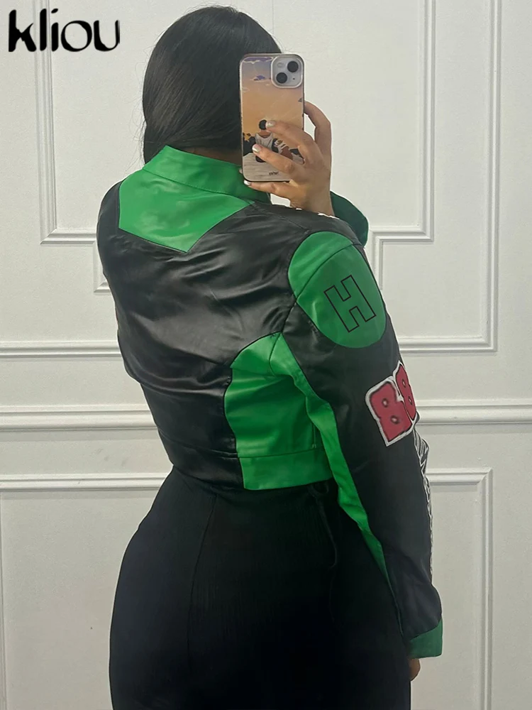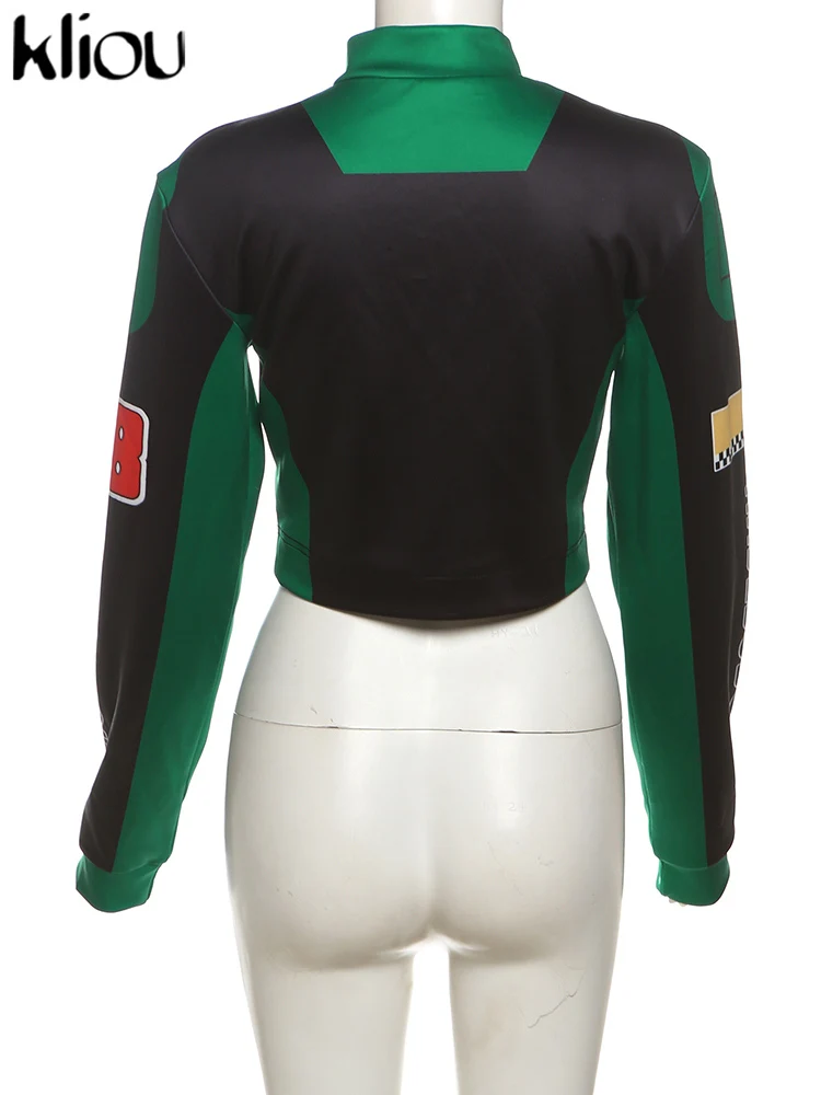 Cutenew Panelled Feather Women Coats New Letter Print Patchwork Buttons Full Sleeve Zip-up Crop Jackets Female Street Outwear