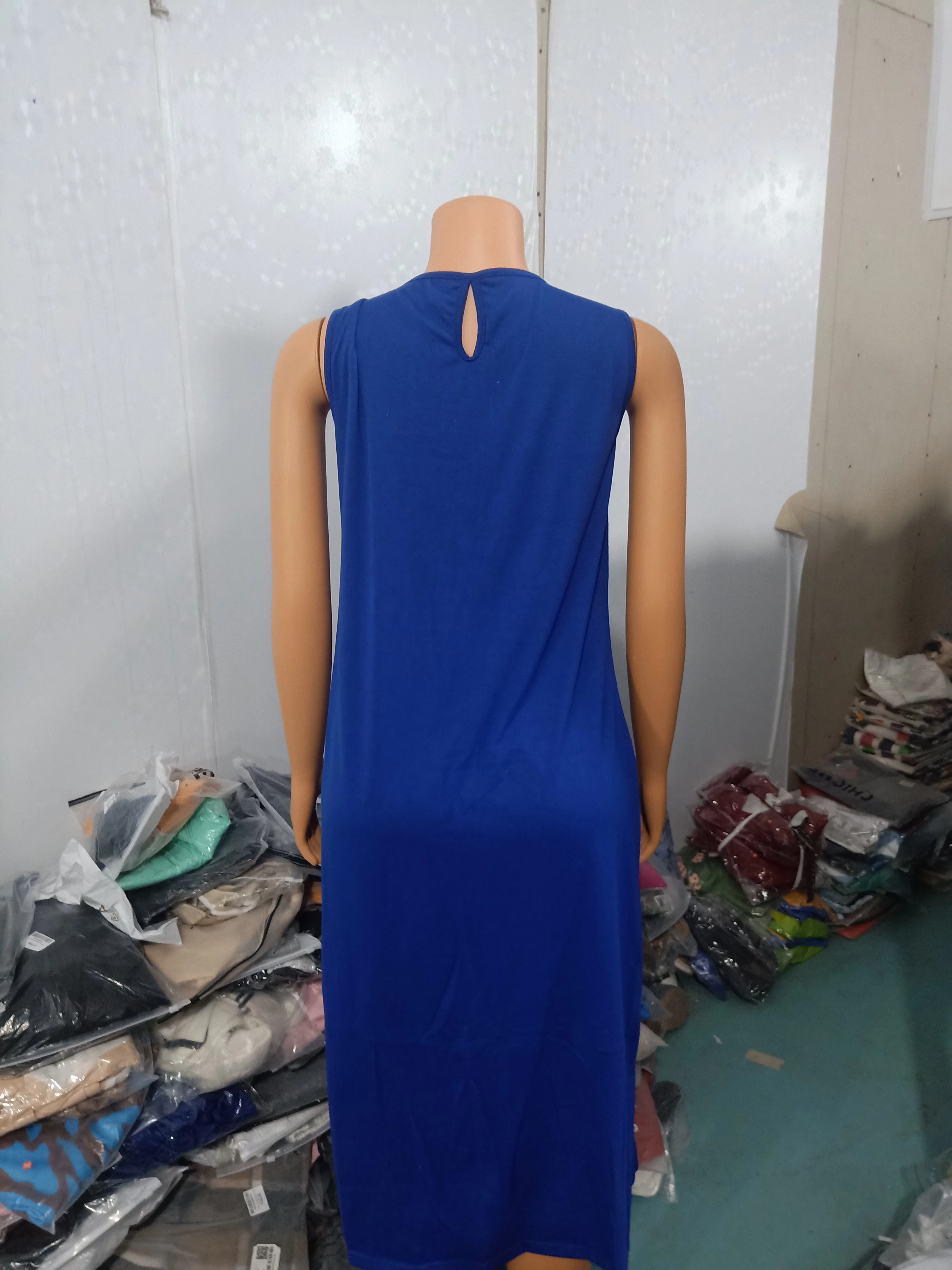 Dresses for Women 2023 Summer Fashion Keyhole Neck Sleeveless Cutout O-Ring Decor Slit Asymmetrical Casual Dress Clothing