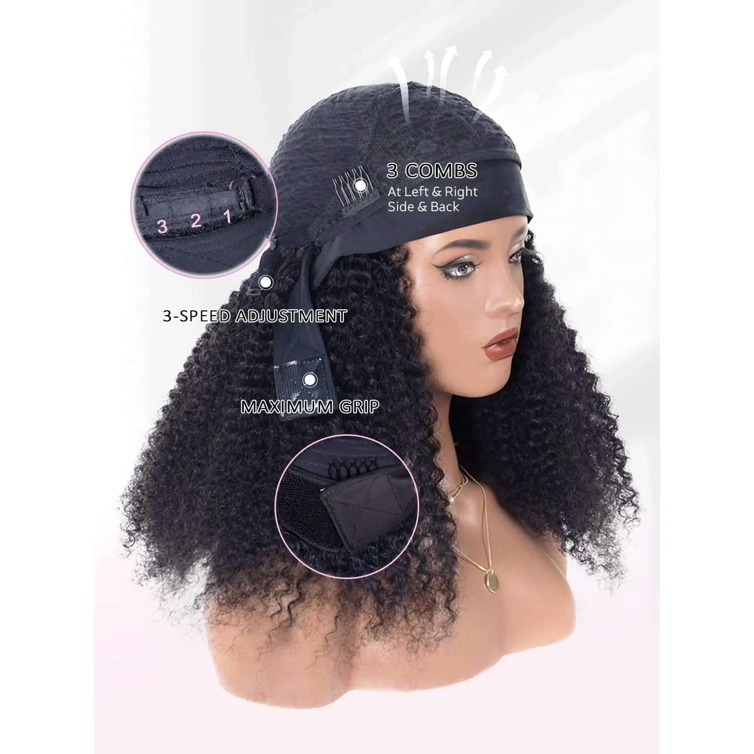 Kinky Curly Headband Wig Human Hair Wigs for Black Women 180% Density Wear and Go Human hair Wig Machine Made Wigs Natural Black