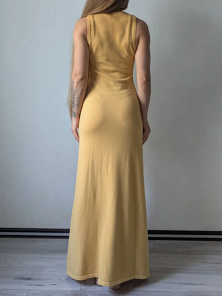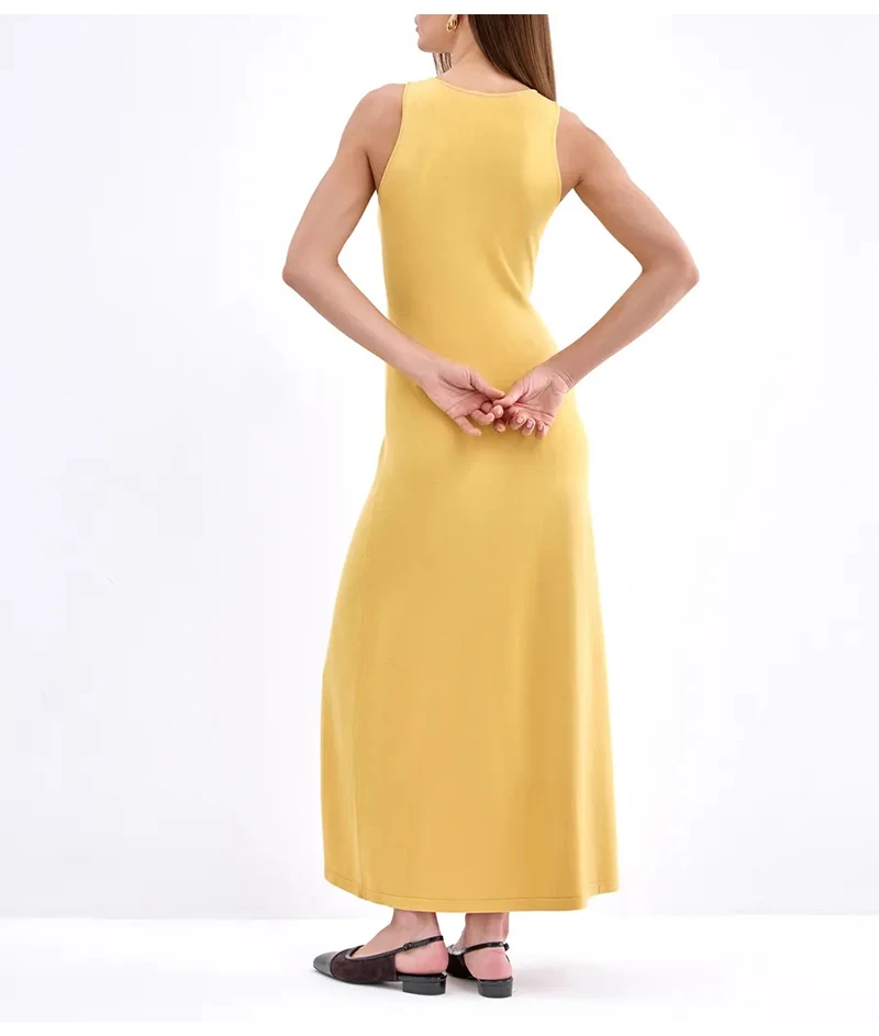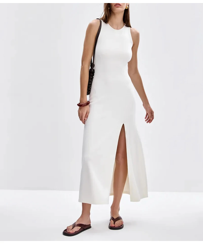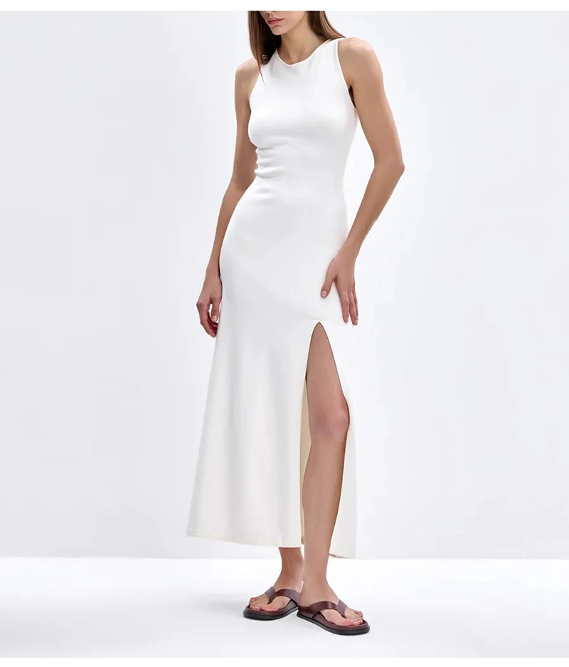 Knit Sleeveless Dresses For Women Long Elegant White High Slit Dress Bodycon Ladies Office Skinny Maxi Tank Rib Dress Female