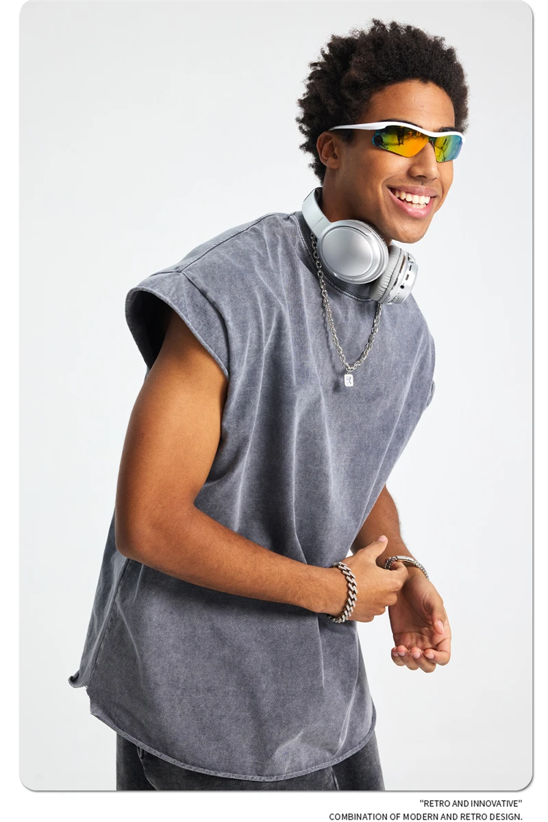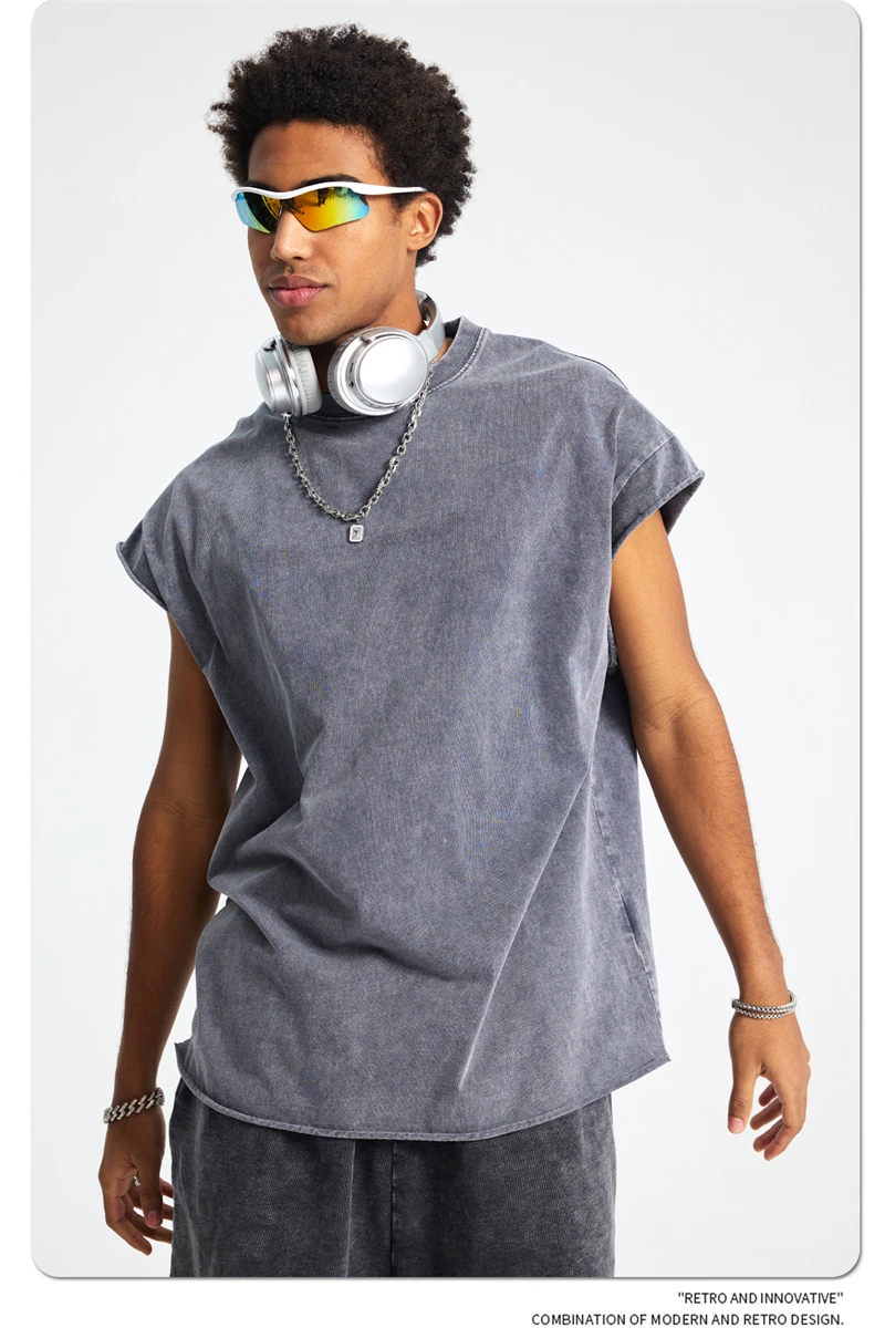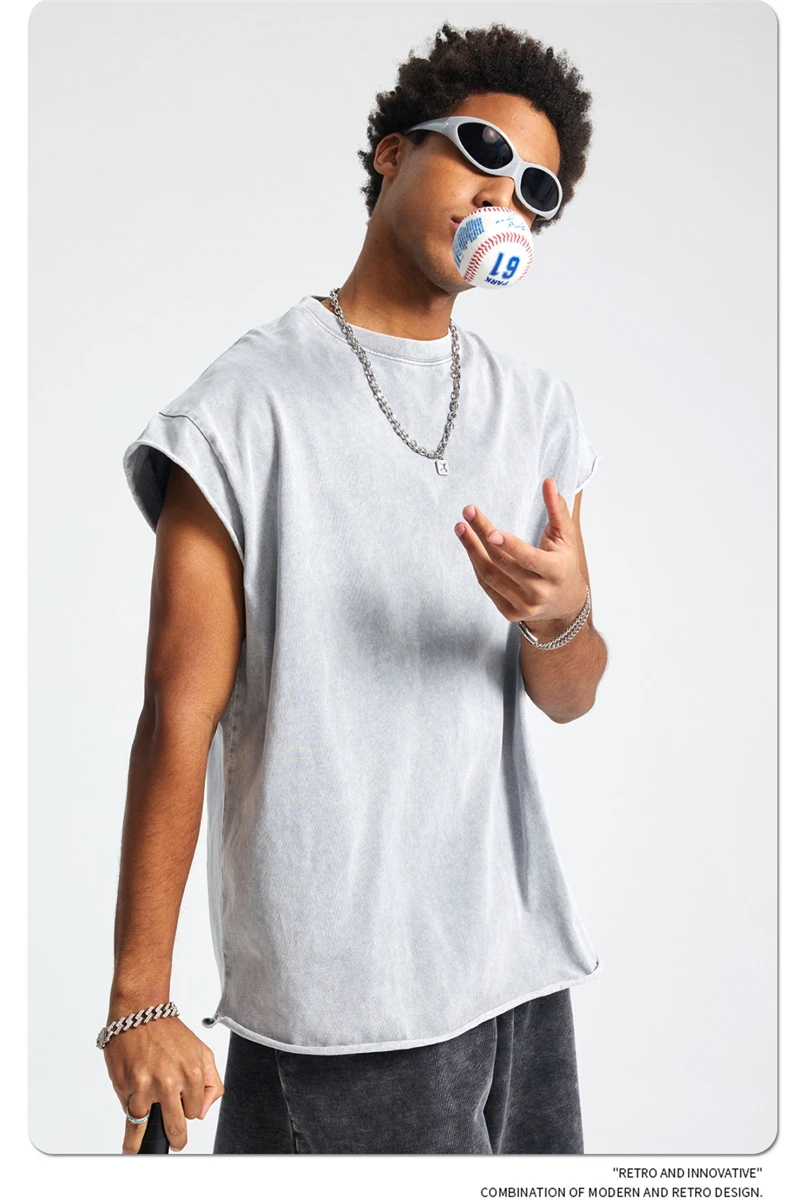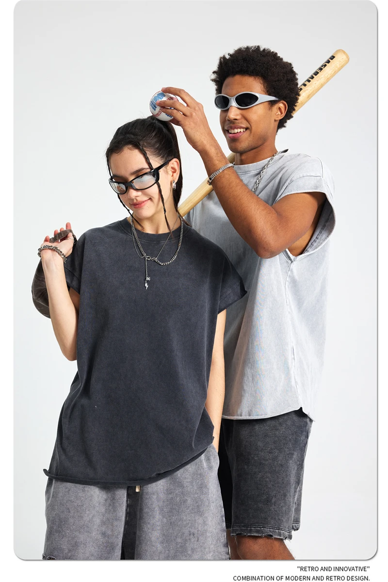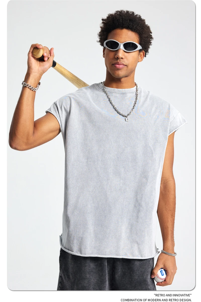 ZODF Trendy Summer Men Batik Washed 275gsm Cotton Tank Tops Unisex Oversized Loose Edge Sleeveless Vests Brand Tees HY1036