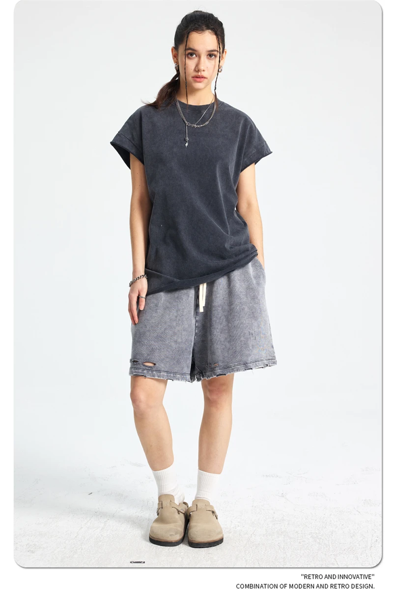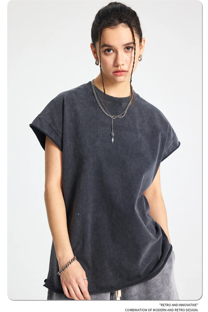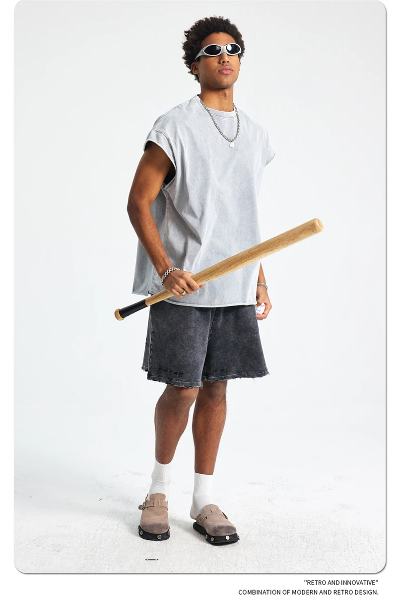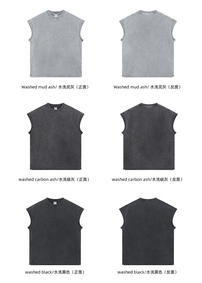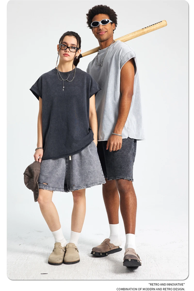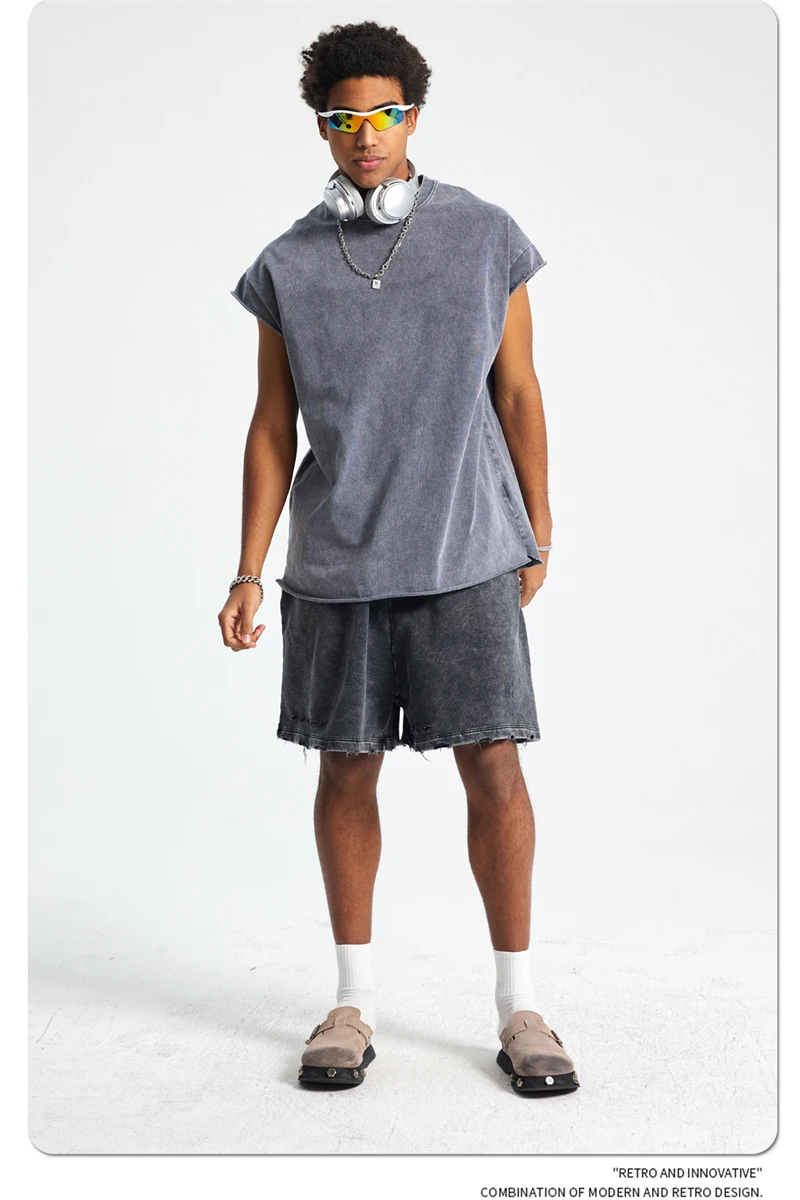 ZODF Trendy Summer Men Batik Washed 275gsm Cotton Tank Tops Unisex Oversized Loose Edge Sleeveless Vests Brand Tees HY1036