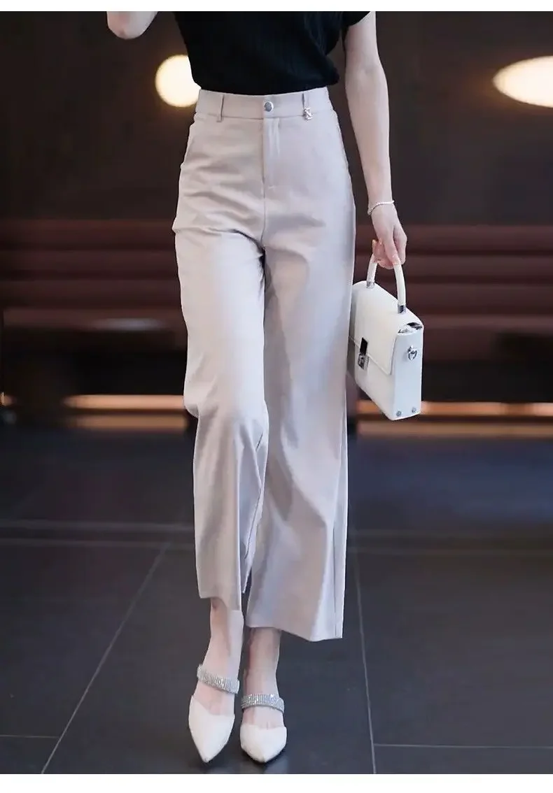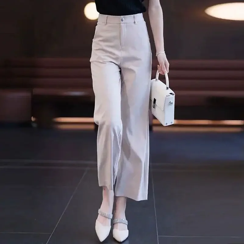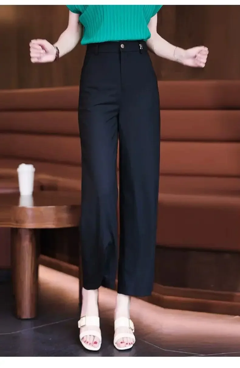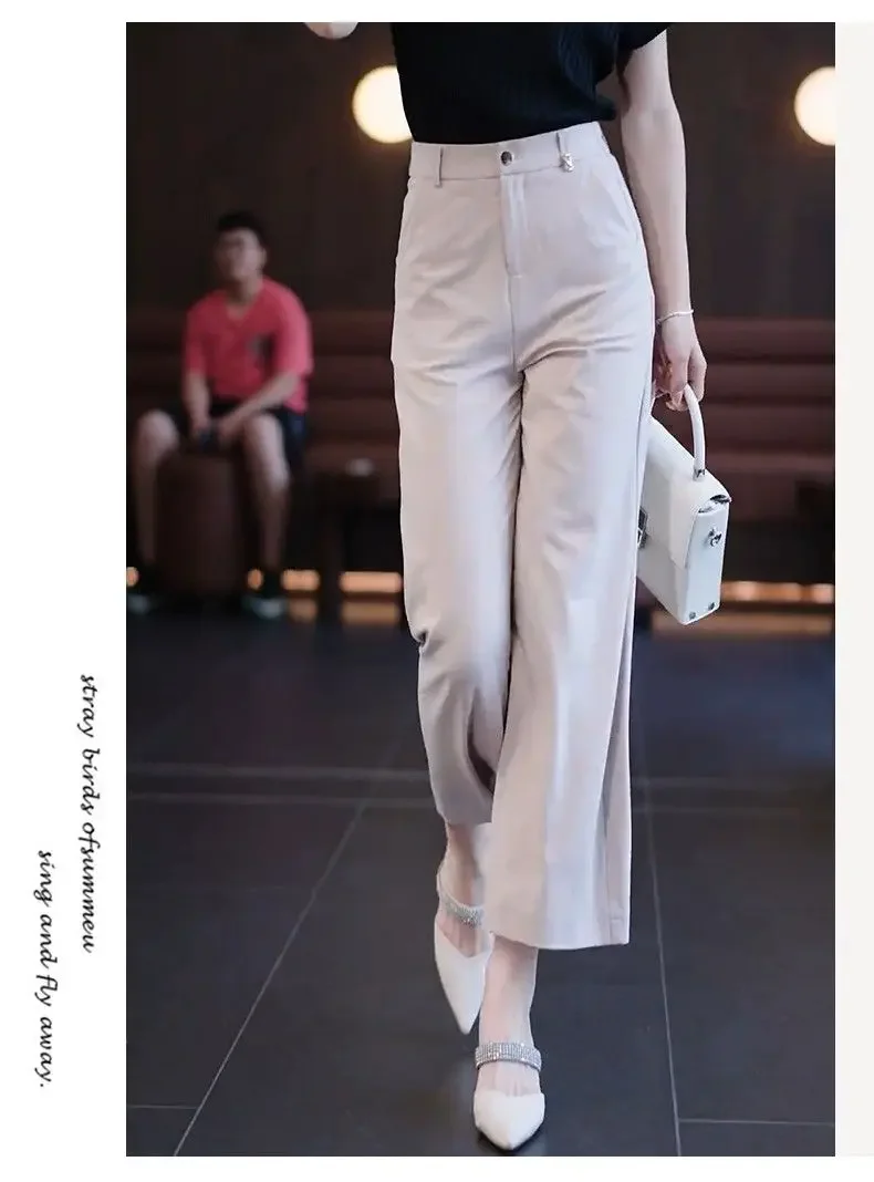 Nine-point Wide-leg Pants for Women in Summer Thin New High-waist Drooping Ice Silk Suit Women's Slim Straight Pants