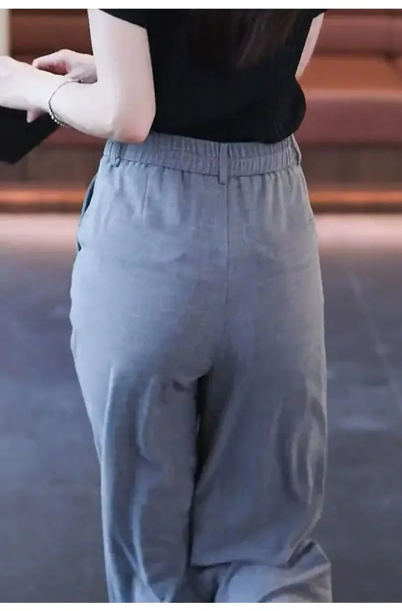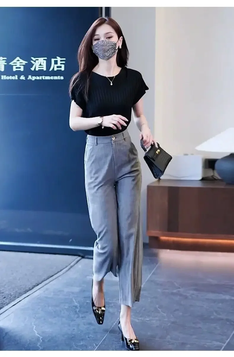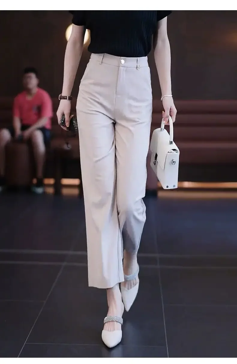 Nine-point Wide-leg Pants for Women in Summer Thin New High-waist Drooping Ice Silk Suit Women's Slim Straight Pants