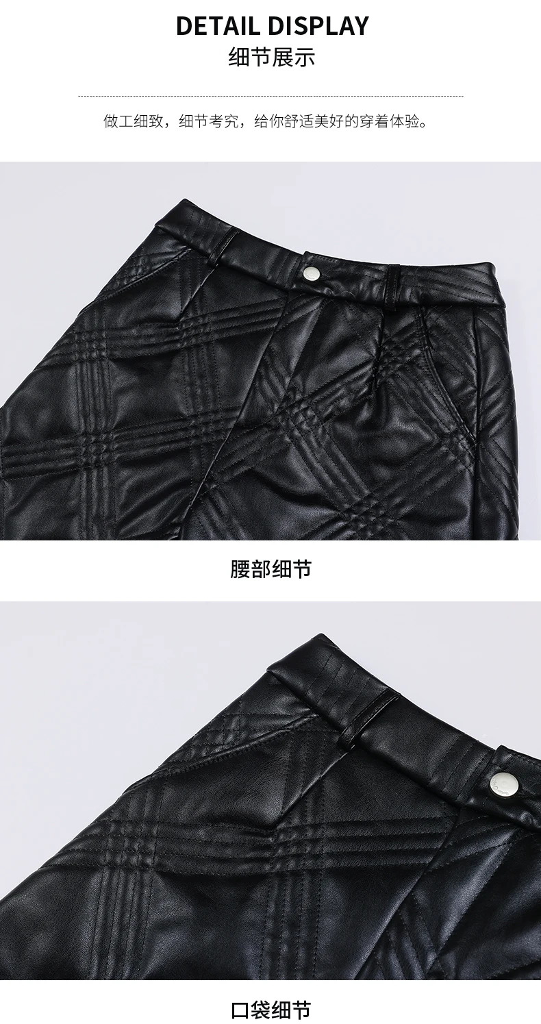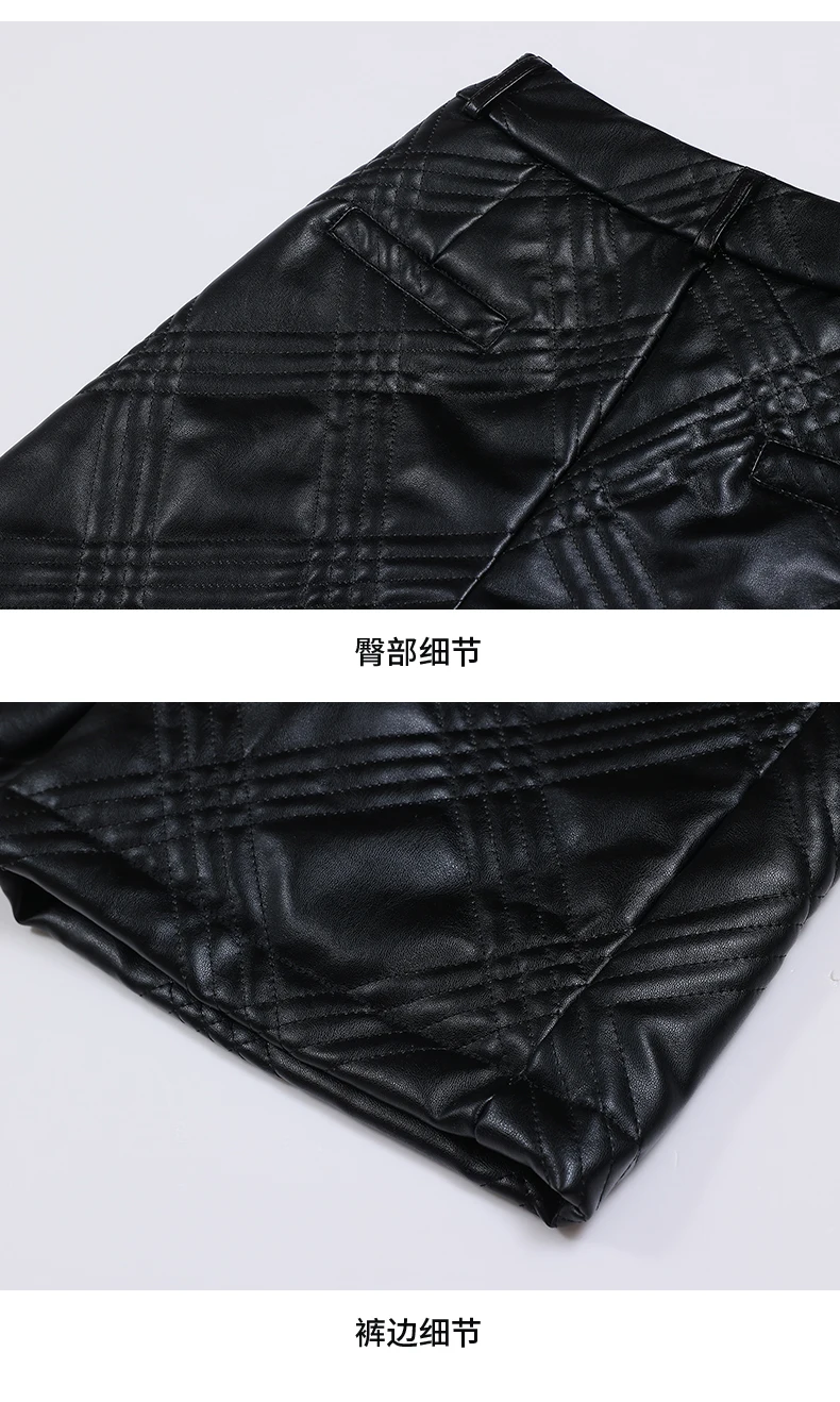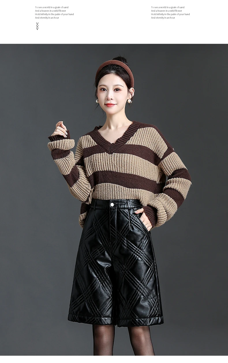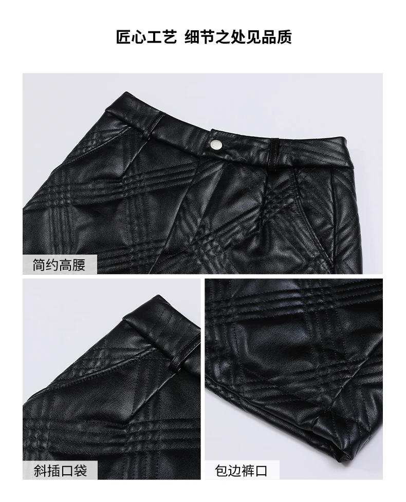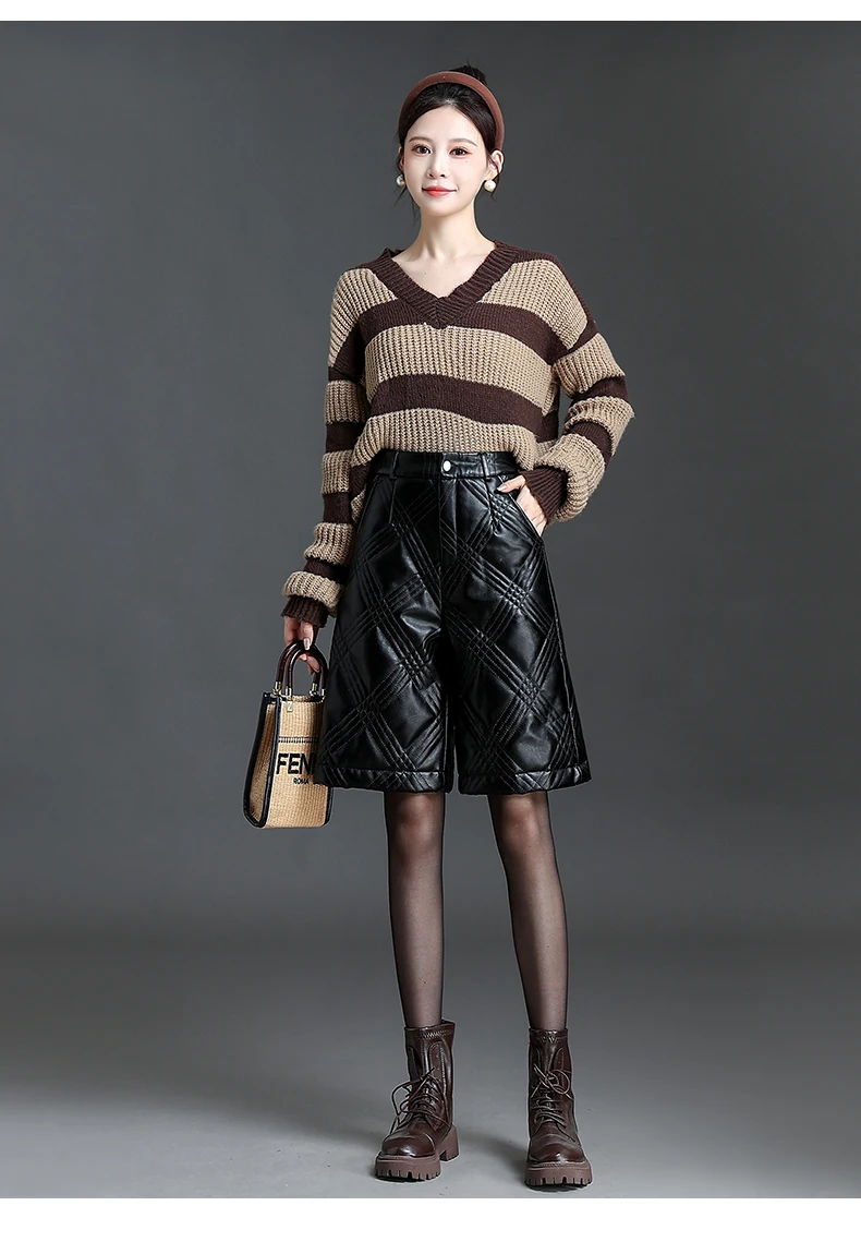 ZUZK Warm Black PU Leather Thick Bermuda Shorts For Women Winter Knee Length Shorts Motorcycle Punk High Waist Bermuda Femme