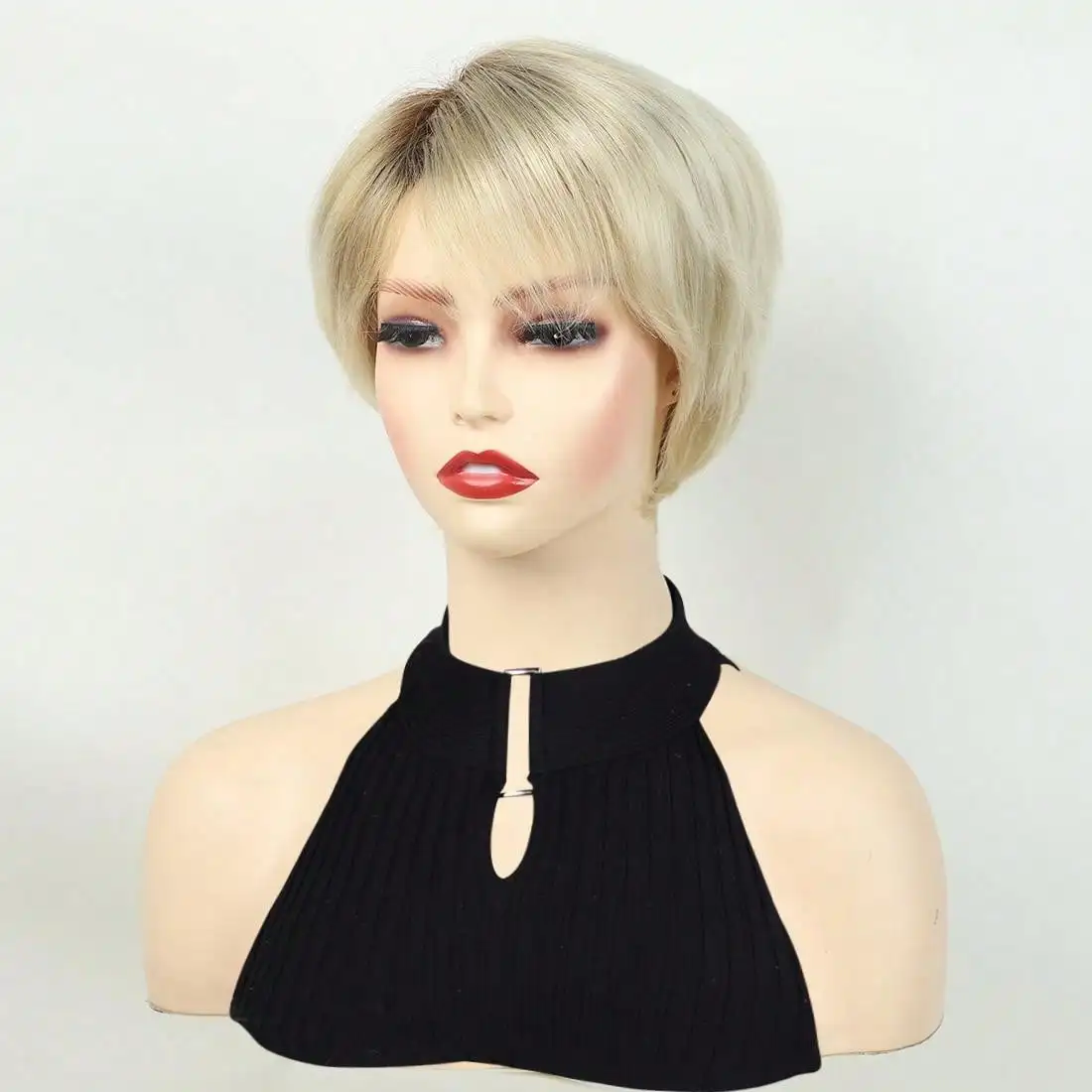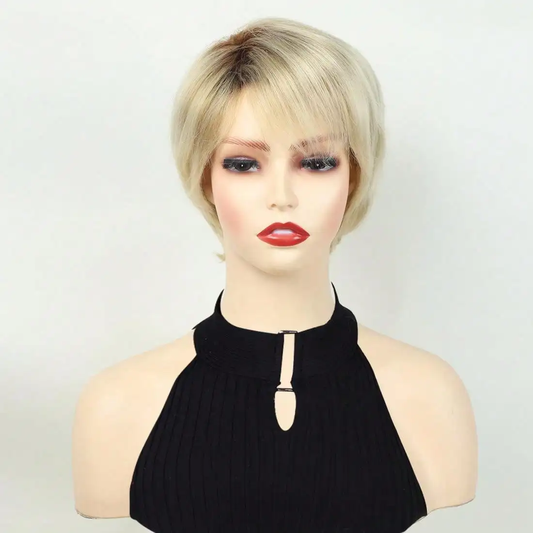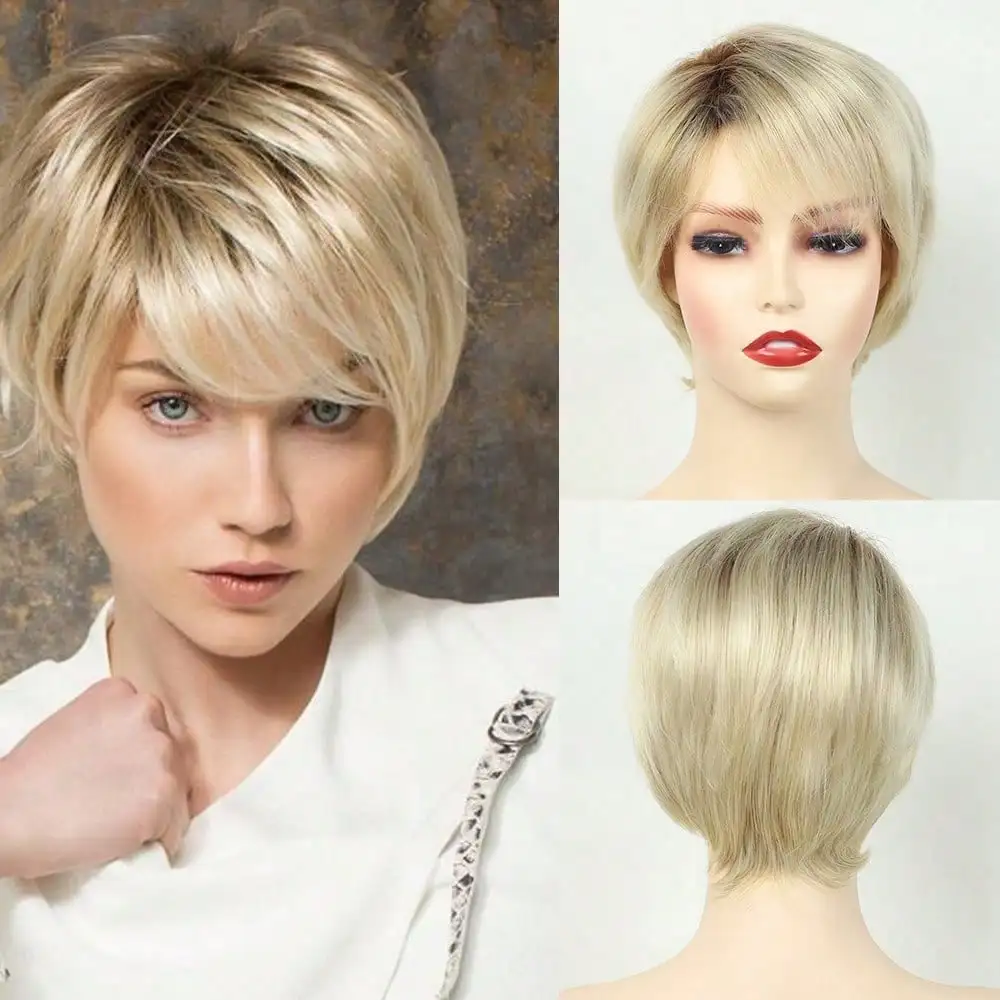 MSIWIGS Women's Short Pix Cut Blonde Straight Wig Natural Synthetic For White Lady Daily Wear High Tempreture Fiber
