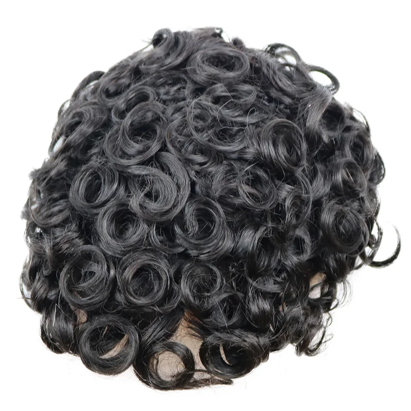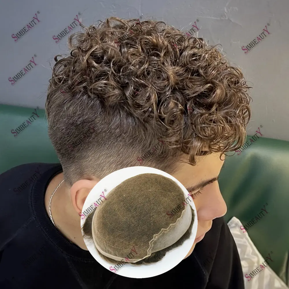 Q6 Swiss Lace Front&Pu Natural Hairline 1B40 1B65 Gray Black Men Toupee 24mm Curly Male Wigs Ash Blonde Human Hair Prosthesi