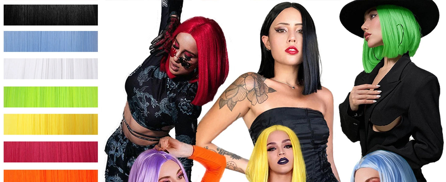 Synthetic Short Straight Bob Wig Middle Part Heat Resistant Synthetic Wigs for Halloween Cosplay Party