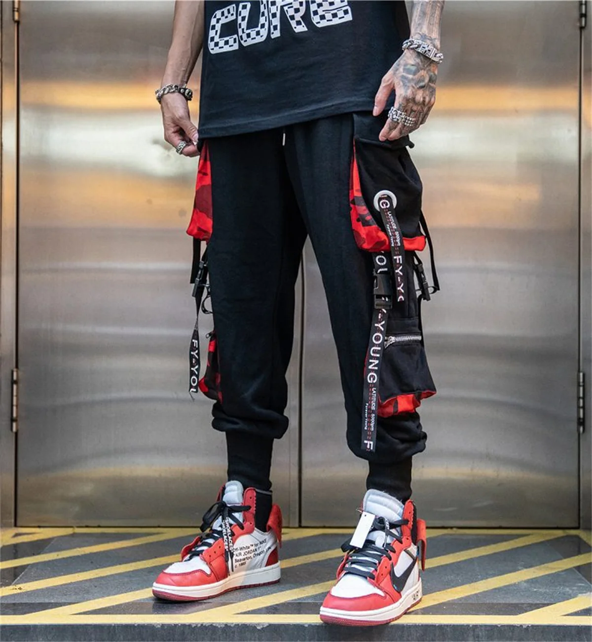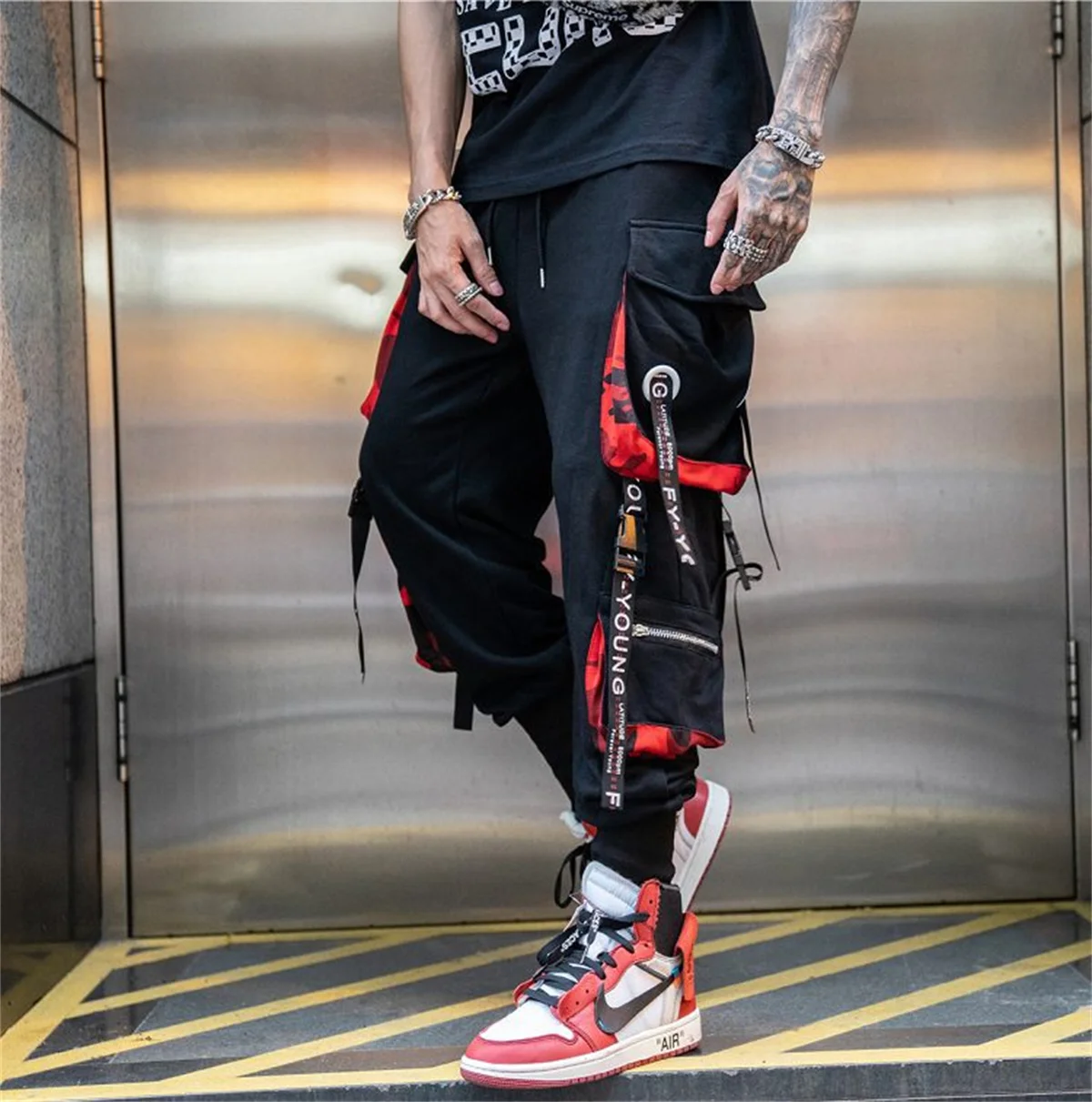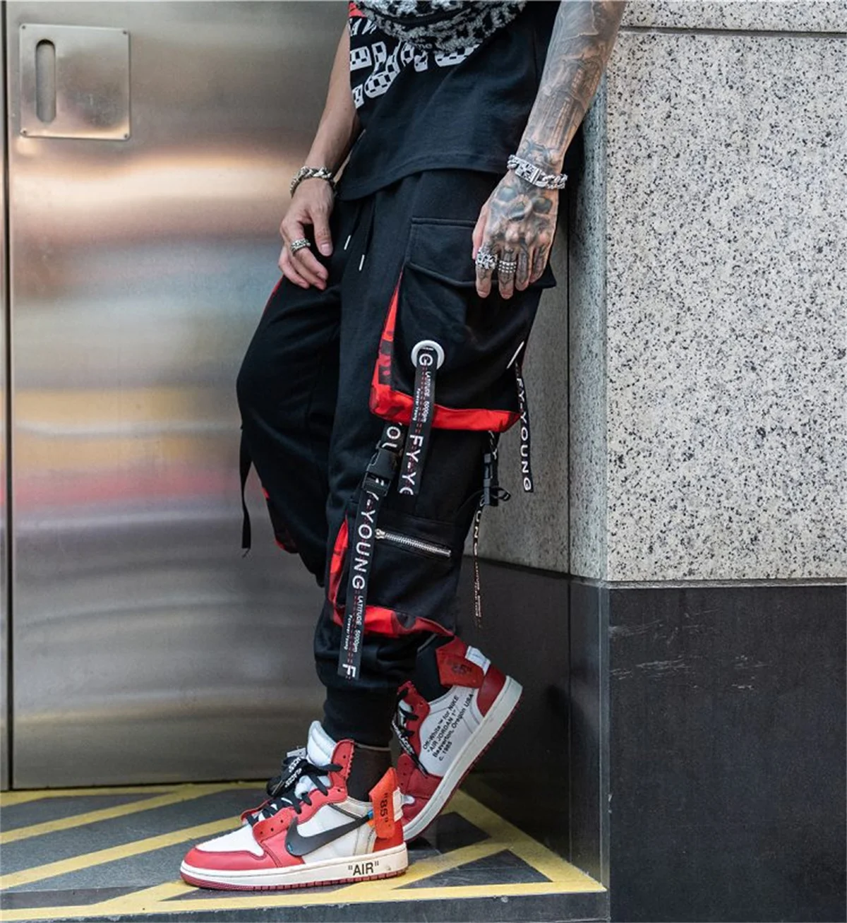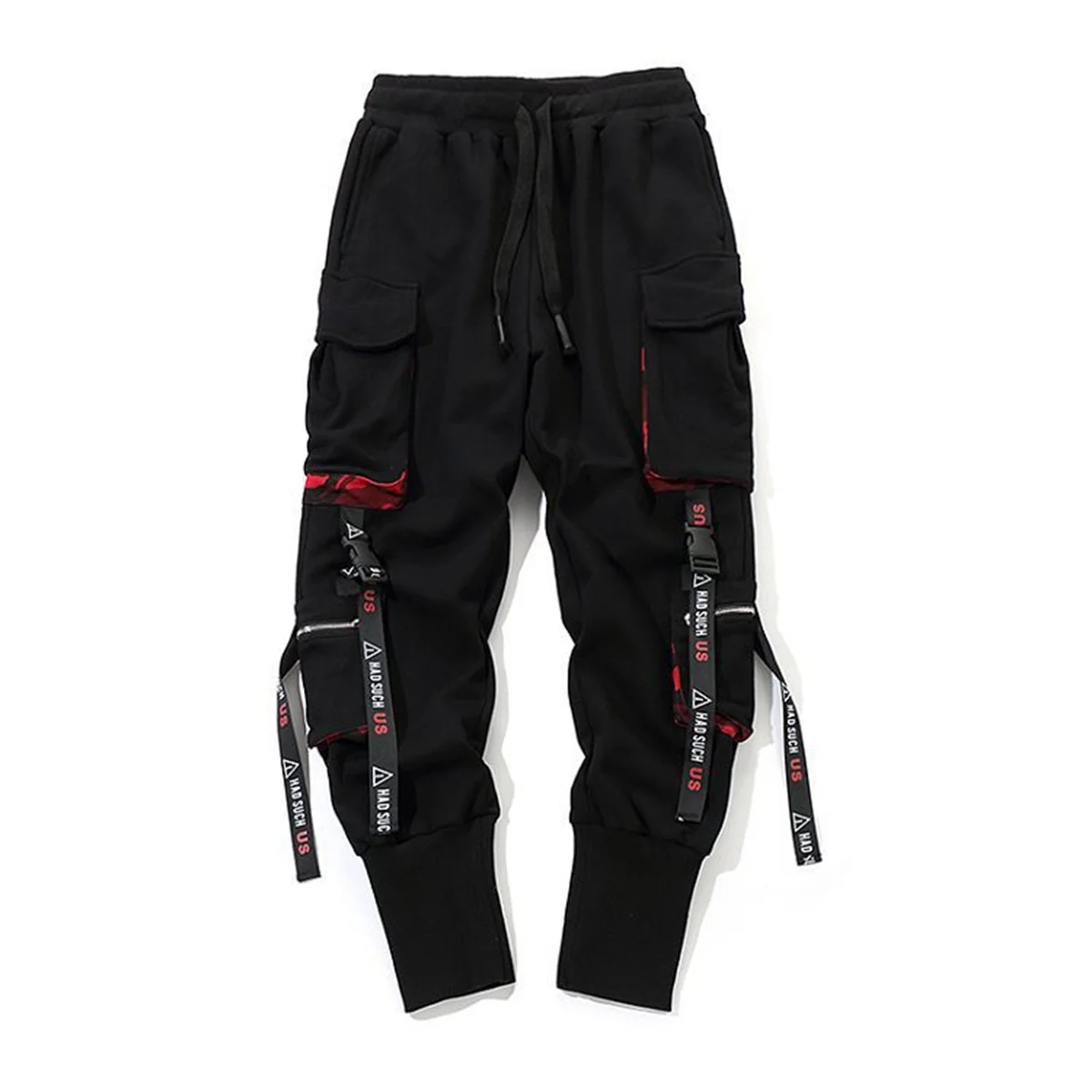 Cool Black Hip Hop Cargo Pants Gothic High Srteet Sweatpants With Pockets Korean High Wast Casual Outwear Pants Men Streetwear