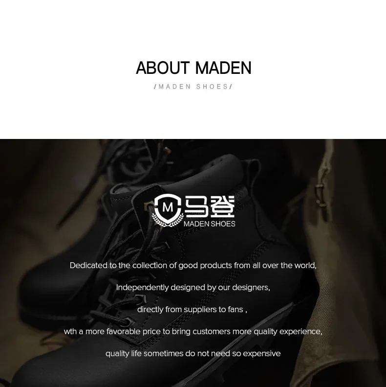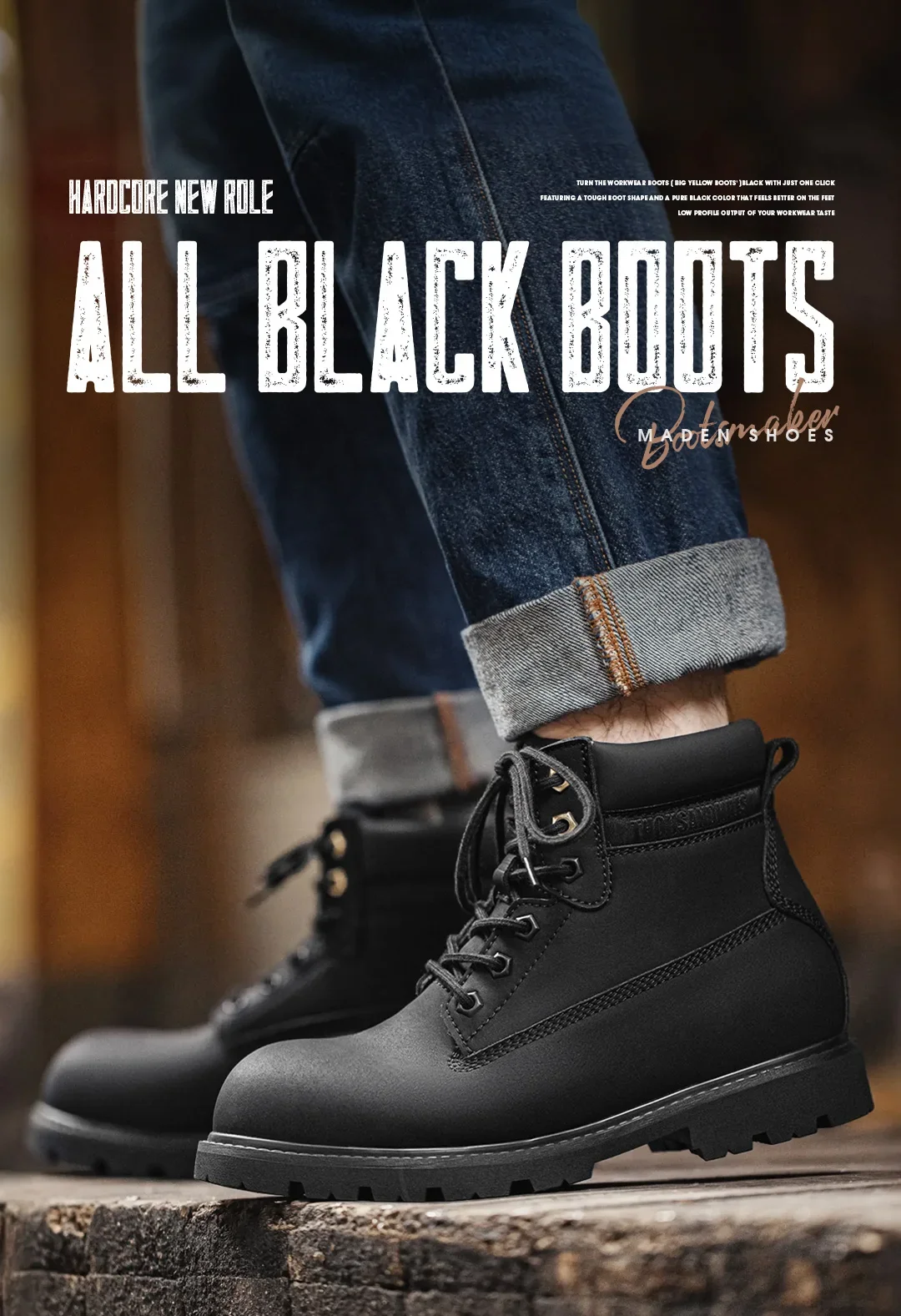 Maden Men's Versatile Black Boots Plush Lining Warmth Shoes Retro Non-Slip Thick Sole Work Boots Outdoor Casual Mid-Calf Boots