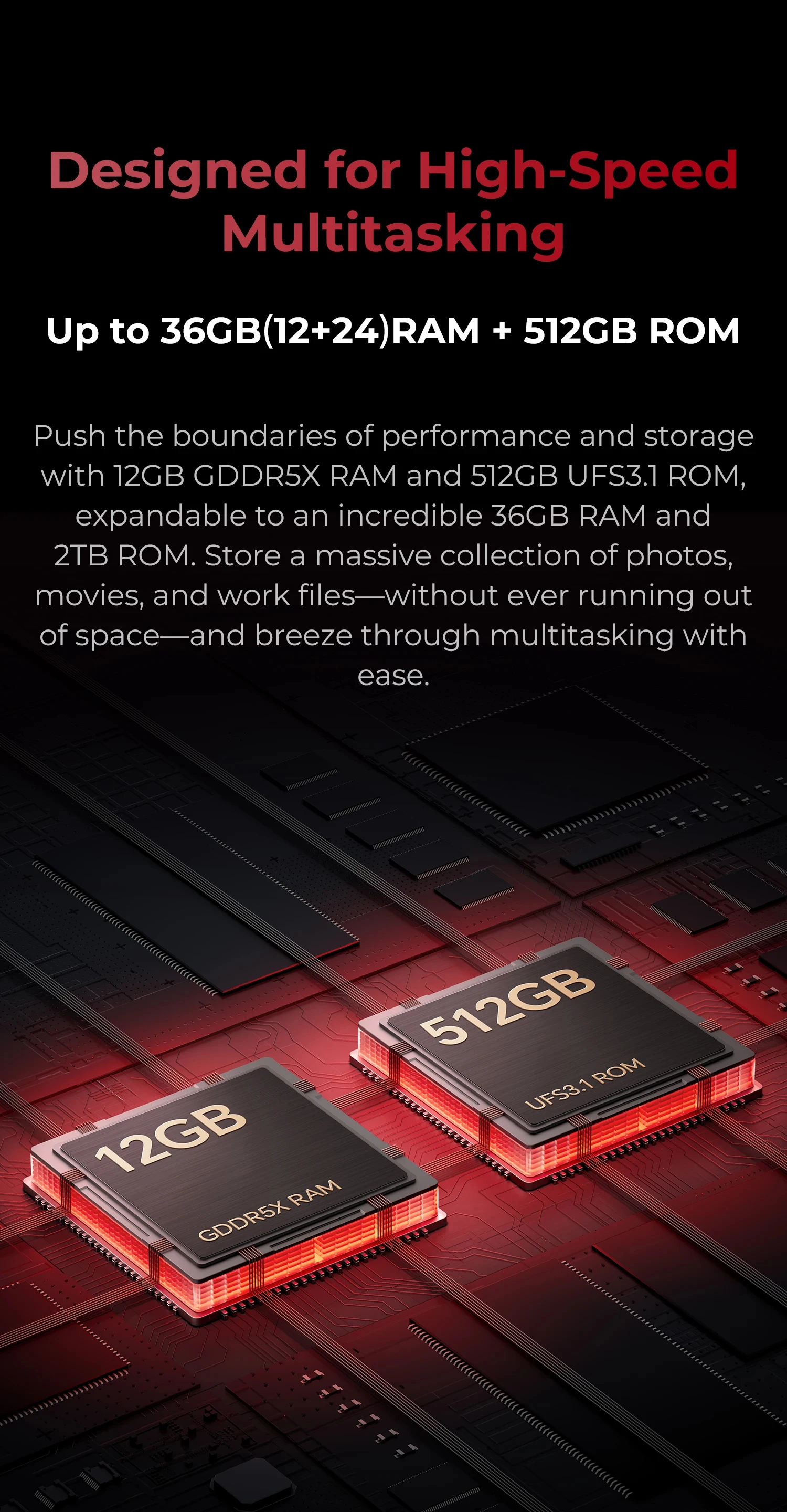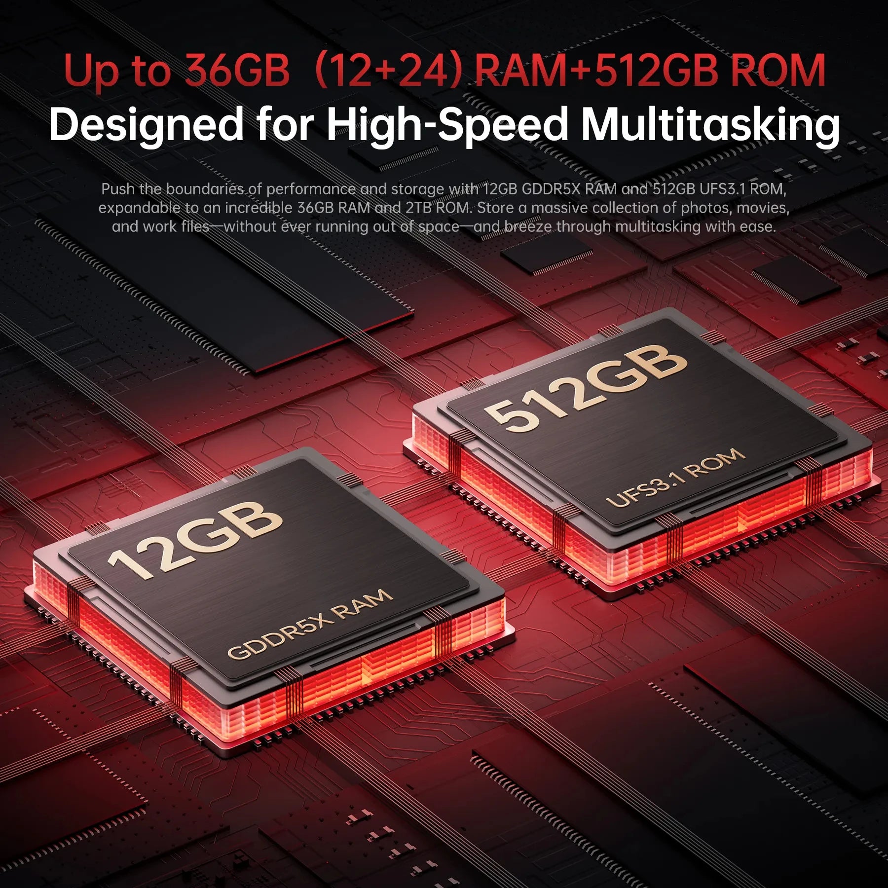 Memory&Storage :Up to 36GB(12+24)+ 512GB
