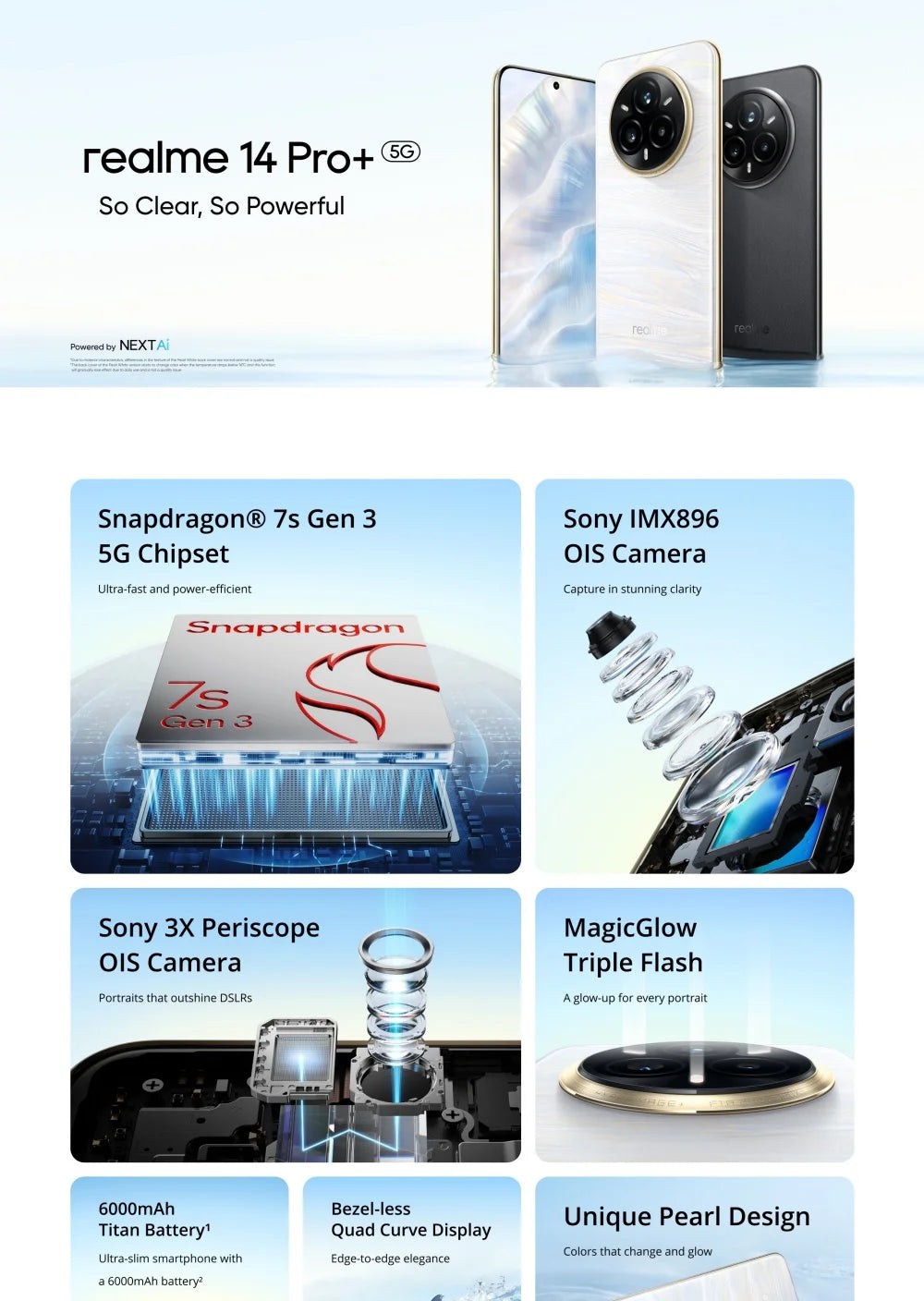 Chinese version realme 14 Pro Plus 5G NFC Snapdragon 7S Gen 3 Octa Core 6000mAh Battery 80W SUPERVOOC 50MP Smartphone Unlocked
