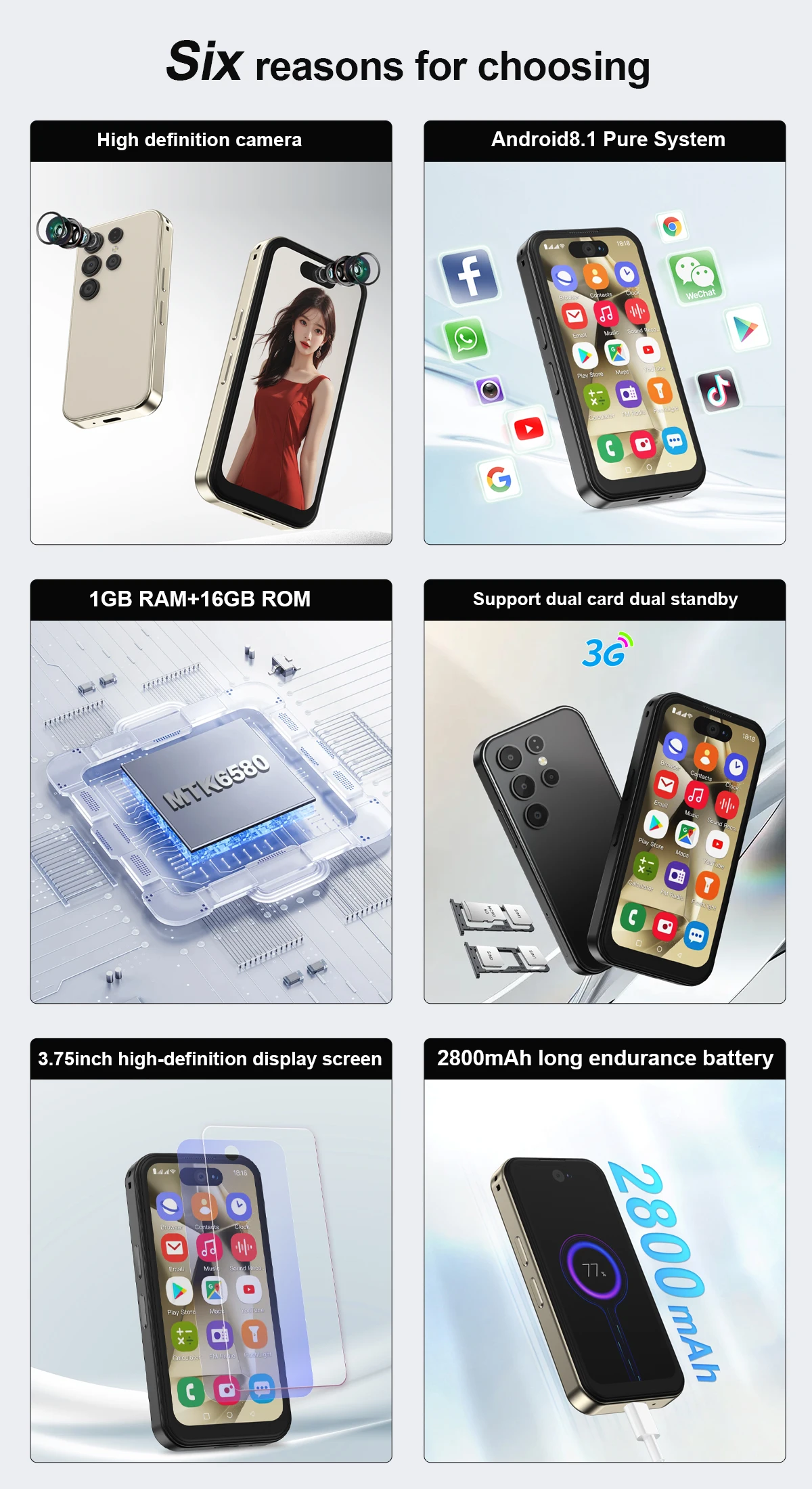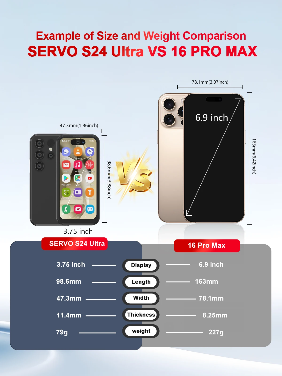 Official SERVO S24 Ultra Mini Android Smartphone 3.75" Screen 3G WCDMA 2MP Camera 1GB+16GB Play Store 2 SIM Small Cellular Phone