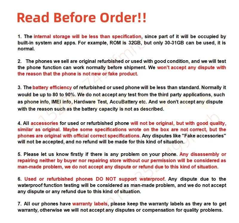 1: The mobile phone has not been disassembled, no parts have been replaced, its airtightness has not been damaged.