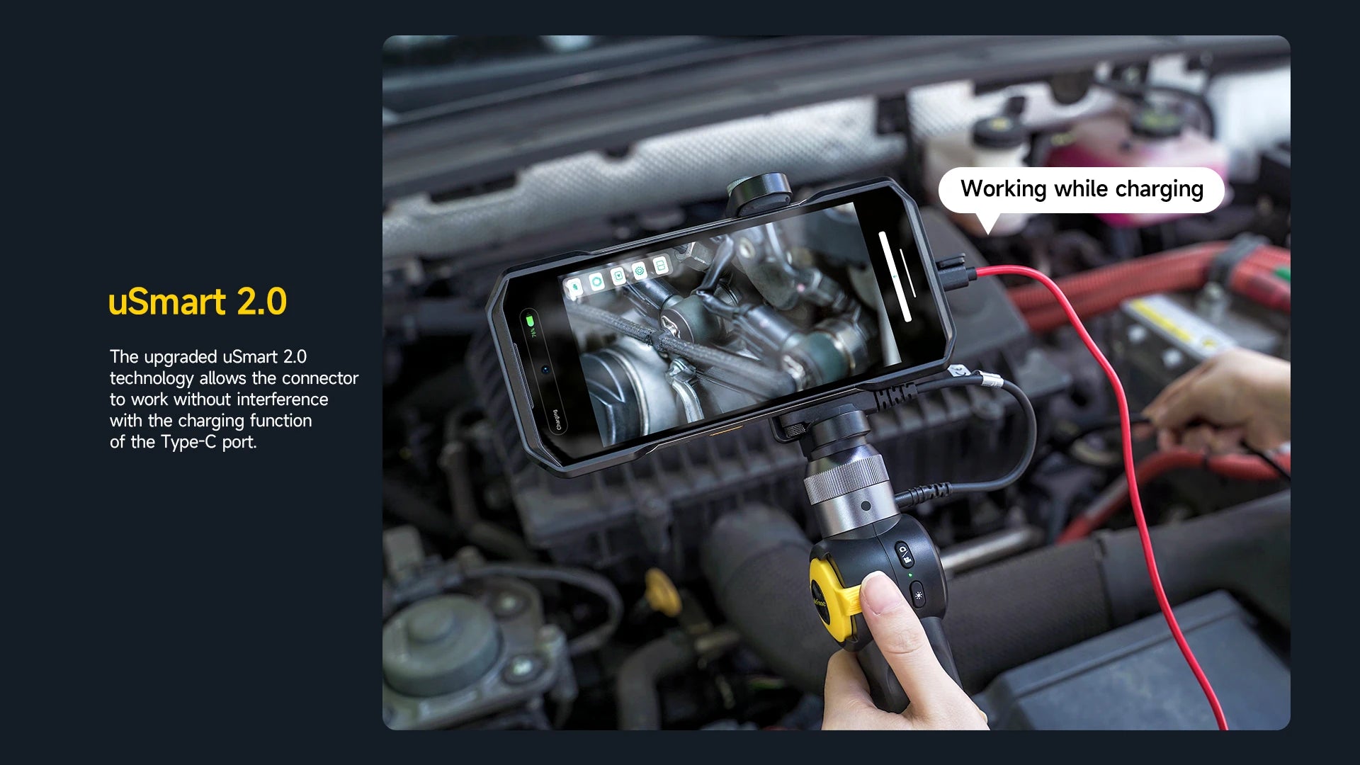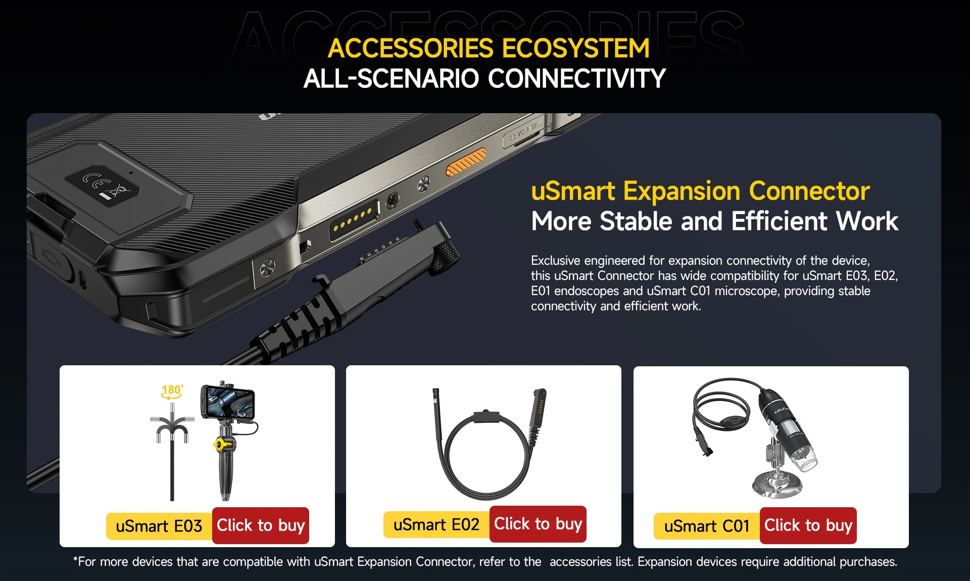 uSmart Expansion Connector, supporting uSmart series accessories. And the type-C port allows charging while the uSmart Connector working. |