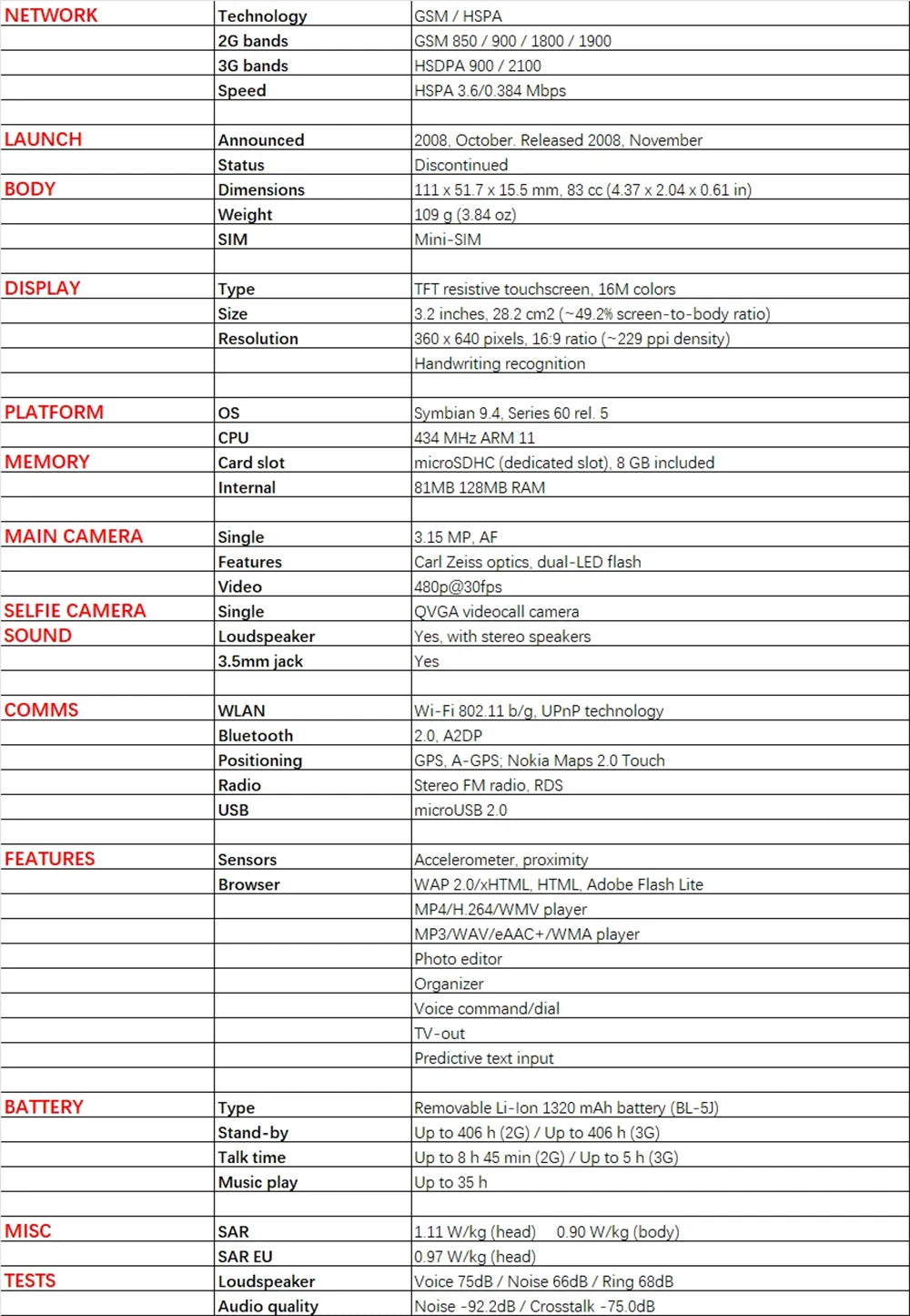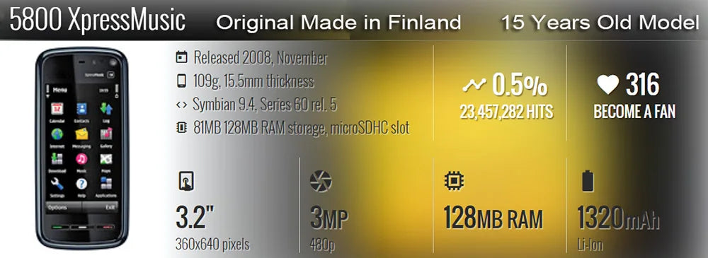 Unlocked Original 5800 Xpress Music Mobile Cell Phone GSM 3G Wifi Bluetooth 3.1MP Camera Touchscreen Cellphone.Made on 2008 Year