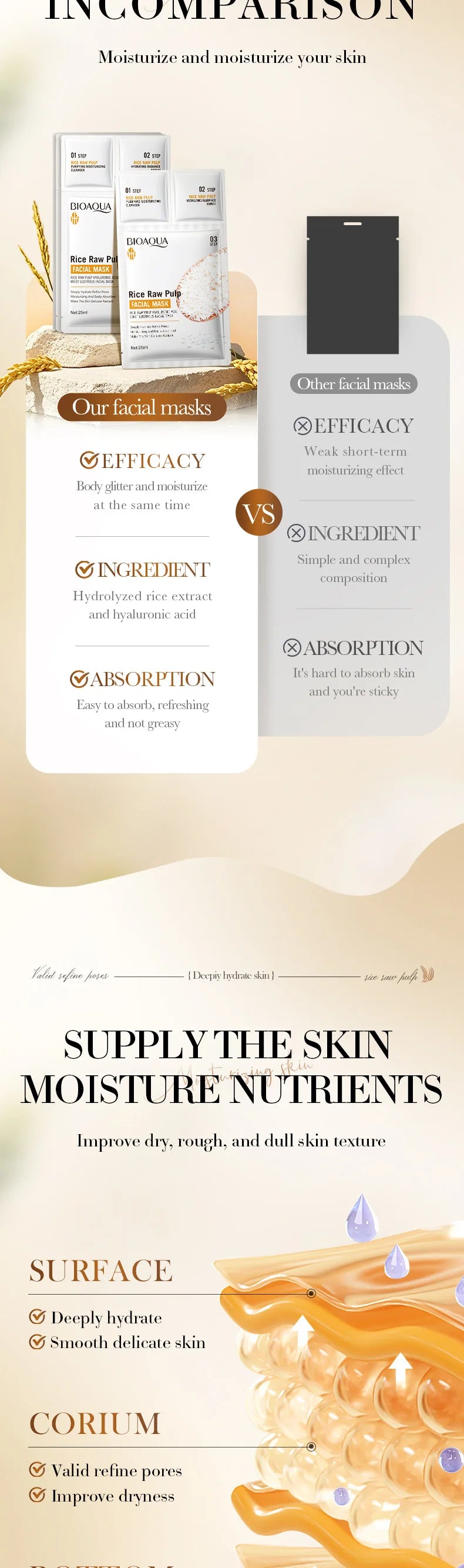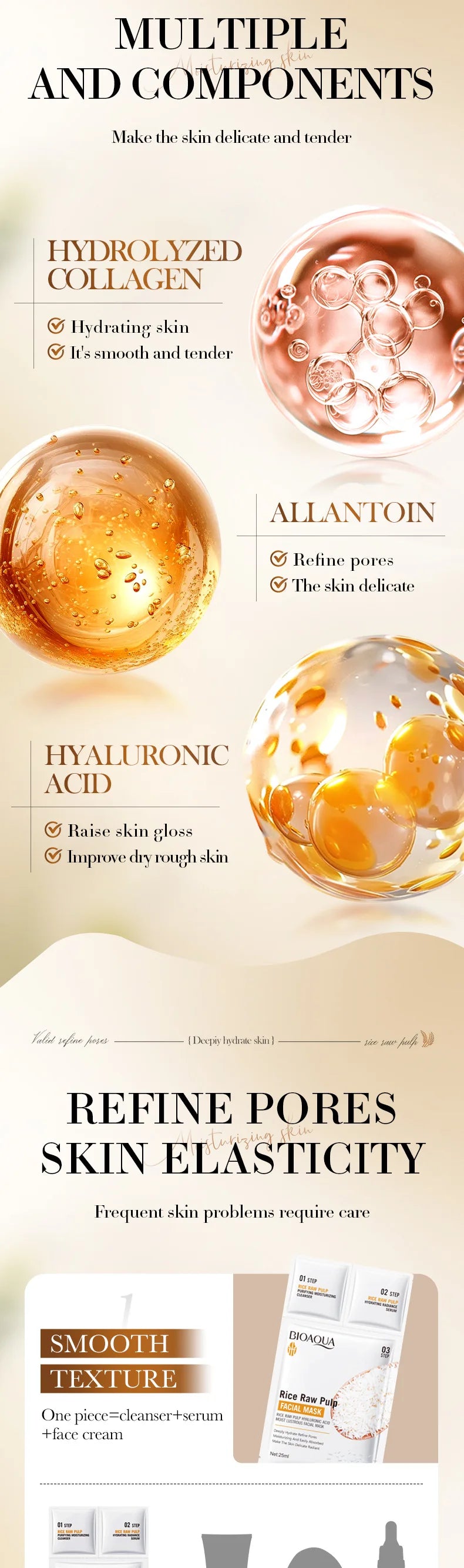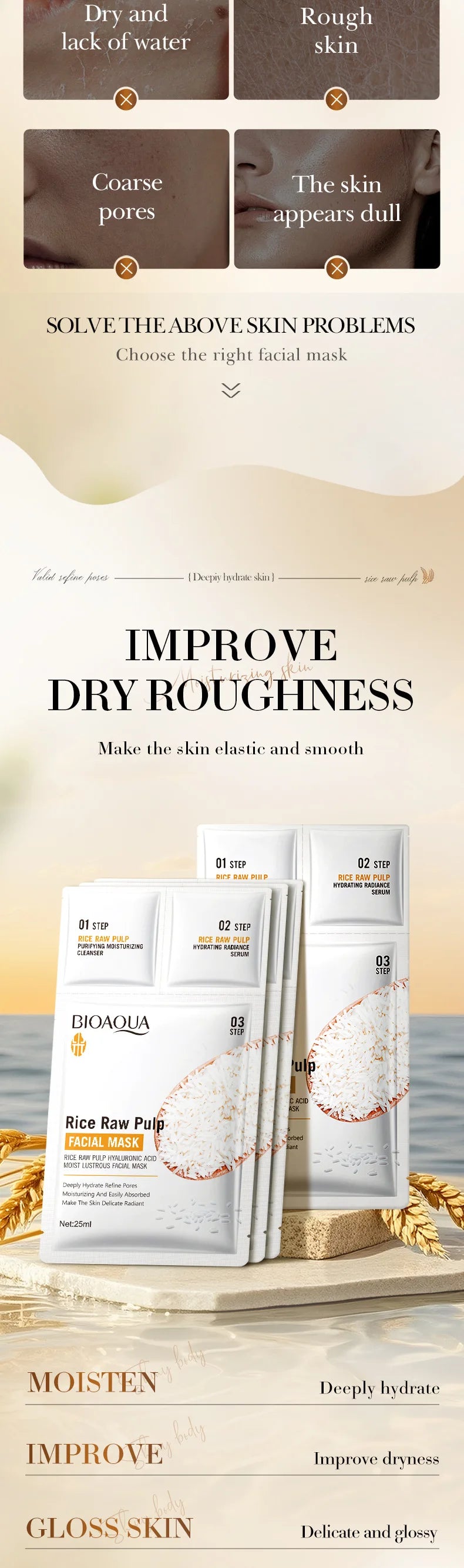 5pcs BIOAQUA White Rice Face Mask Sets Moisturizing Whitening Anti Wrinkle Facial Serum Cleanser Face Masks Skin Care Kit