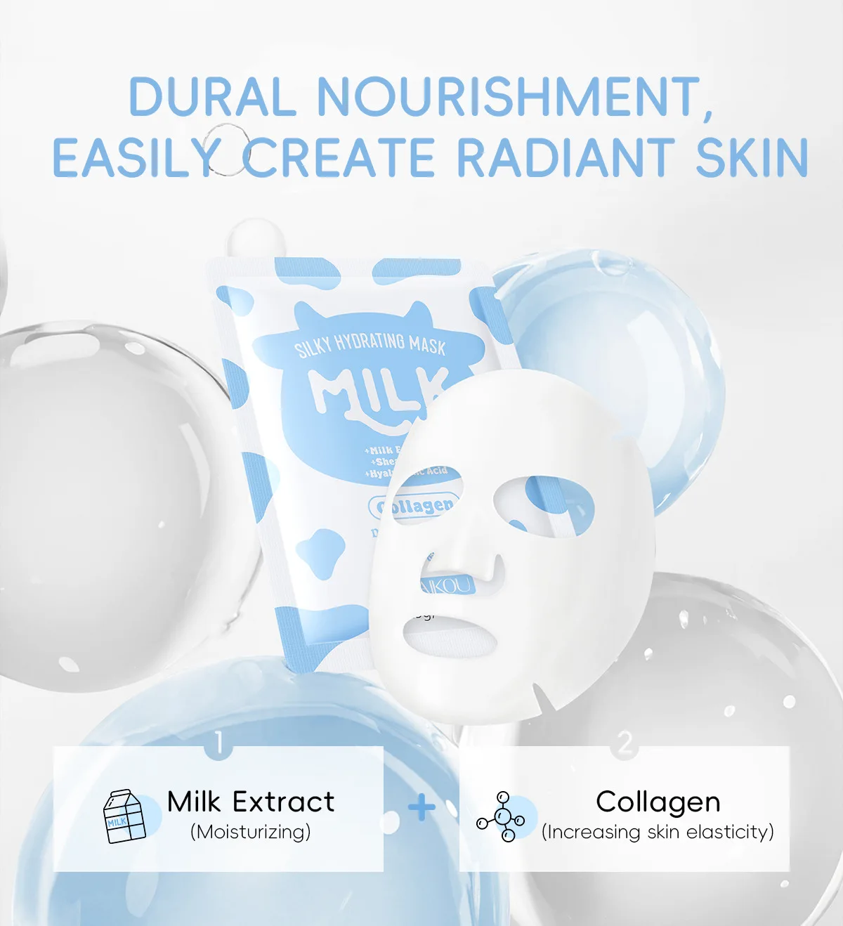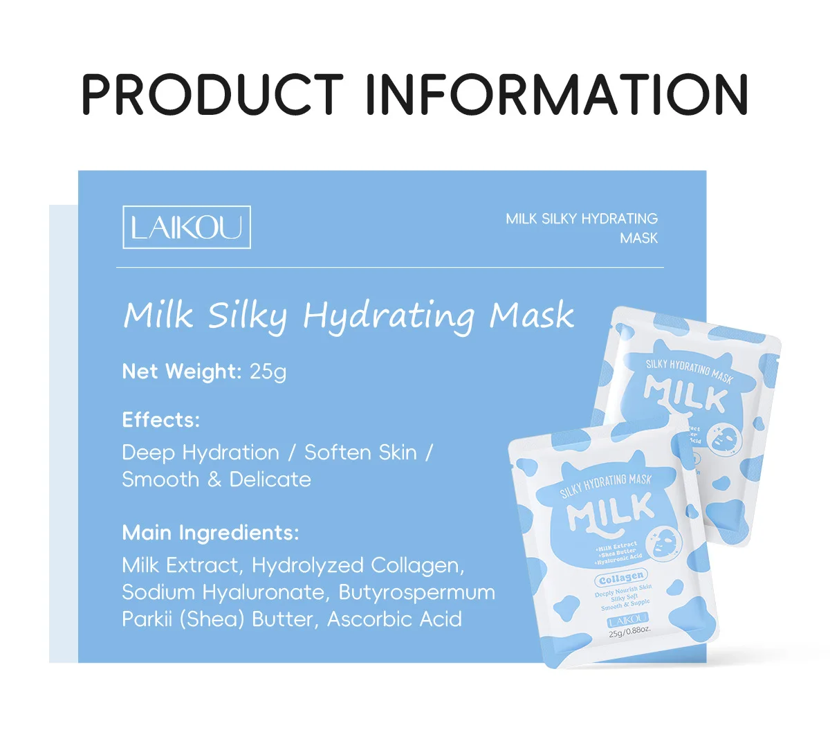LAIKOU Milk Facial Face Mask Shrink Pores Deep Hydrating Overnight Mask Moisturizing Brightening Face Skin Care