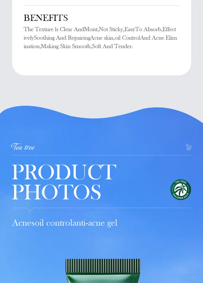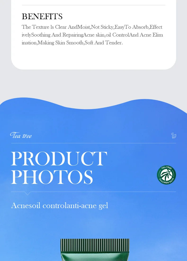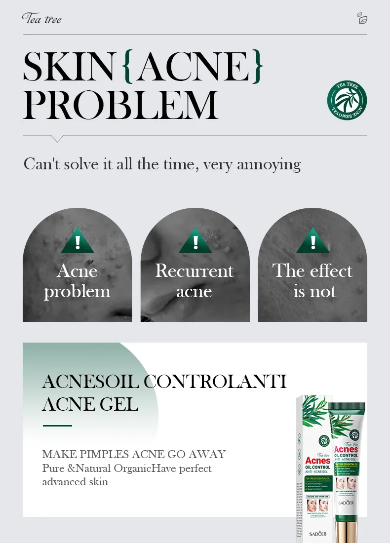 SADOER Tea Tree Acne Removing Cream Facial skincare Oil Control gel Creams Hydrating Moisturizing Facial Cream Skin Care