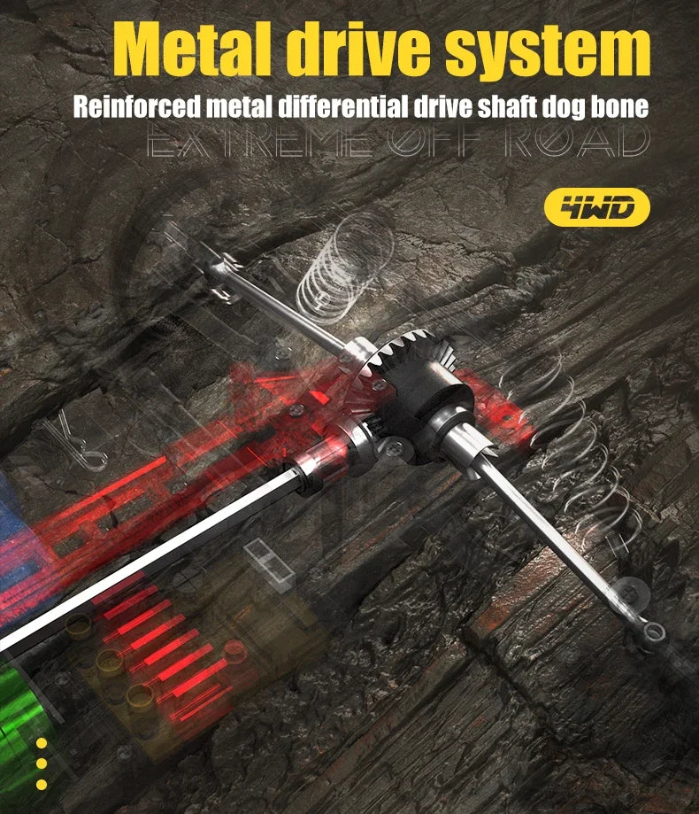 13, simulation off-road tires, strong grip;Accessories: 1) Complete vehicle; 2) Remote control; 3) Instructions in both Chinese and English; 4) Lithium battery; 5) USB balance charging; 6) tail wing; 7) head wheel; 8) damping adjustment buckle; 9) Metal latch; 10) hexagonal sleeve; 11) Brushless version guide insert