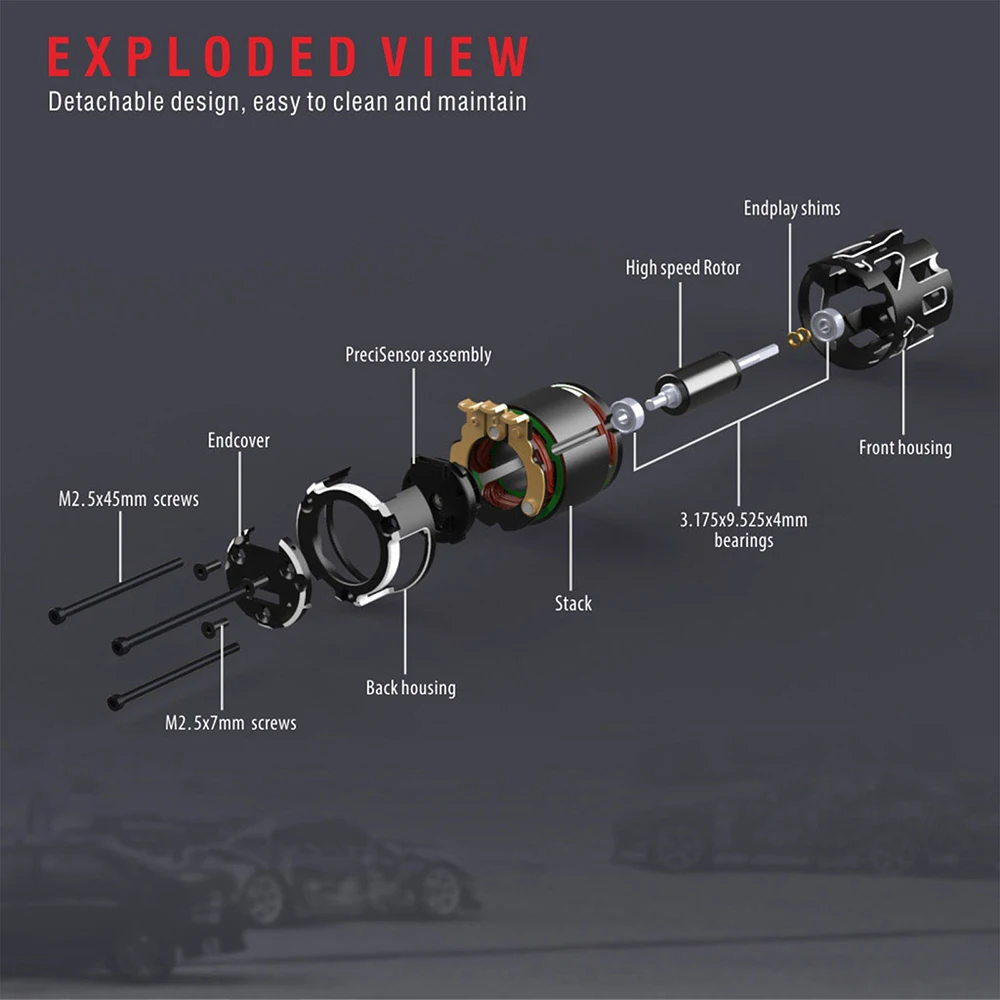The new and unique stator design of V5R silver-black stock motor is optimised to provide strong torque and high RPM.