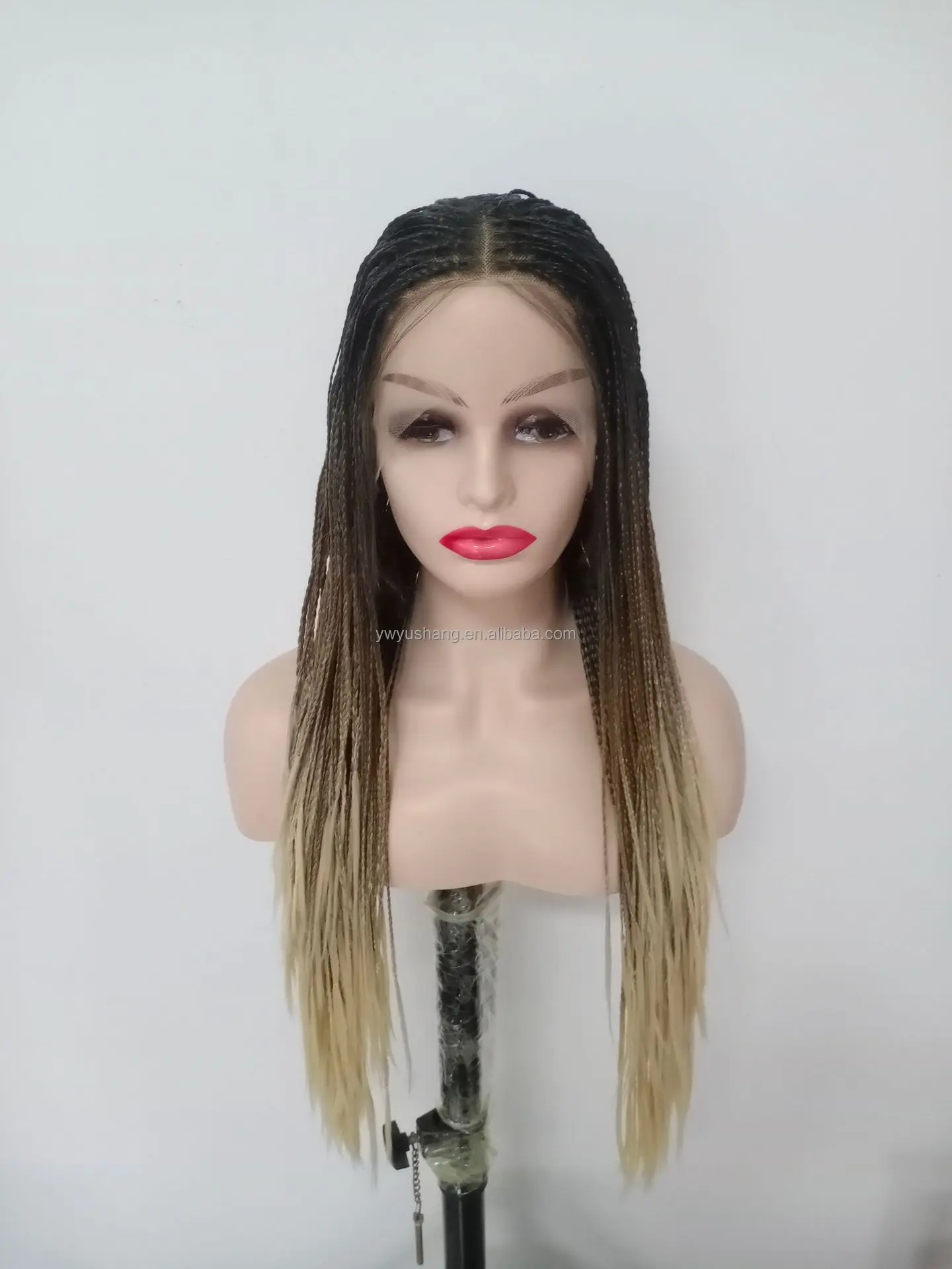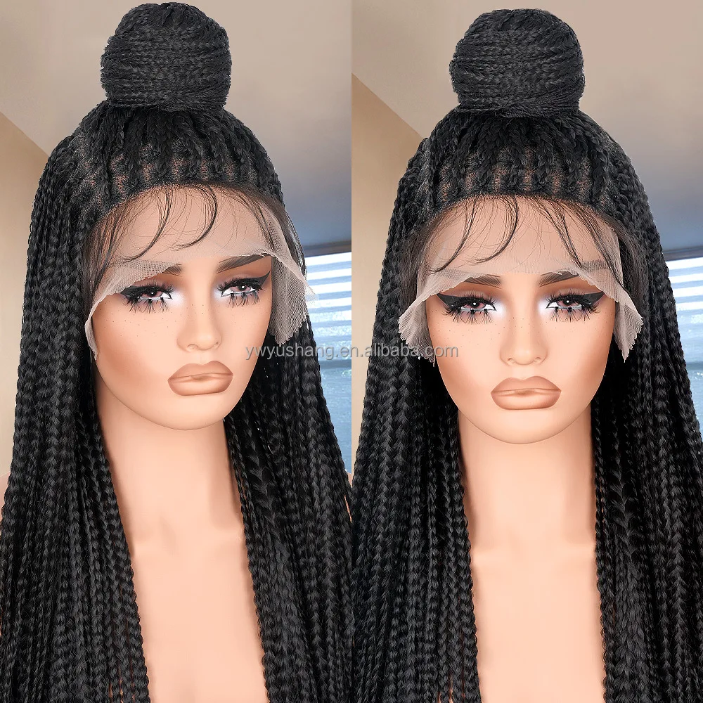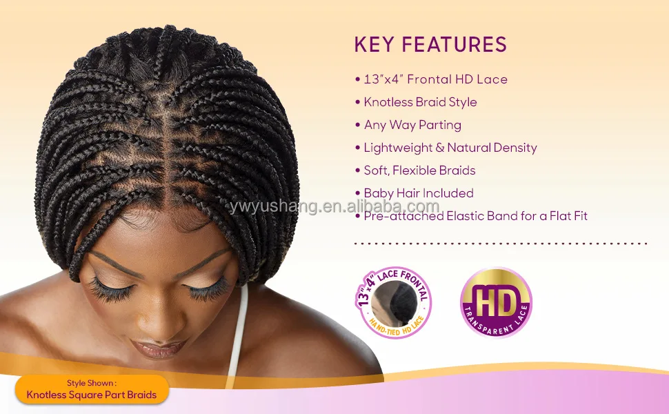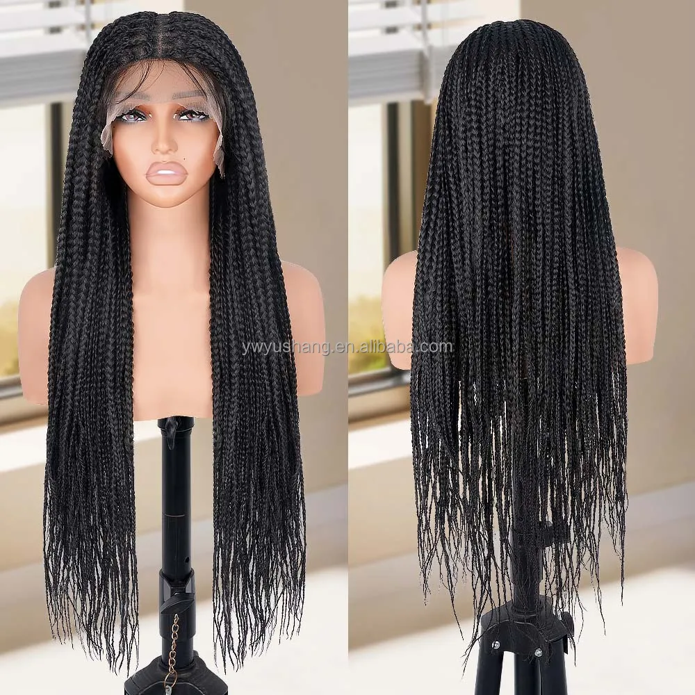 Long African Knotless Square Part Braids 13*4 Front Lace HD Dreadlocks Hair Wig Braiding High Temperature Synthetic Fiber Women
