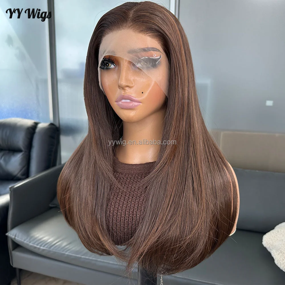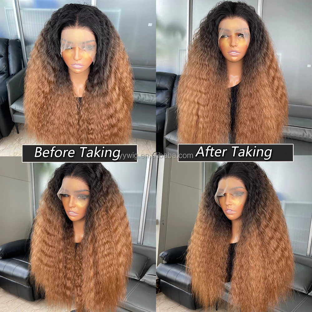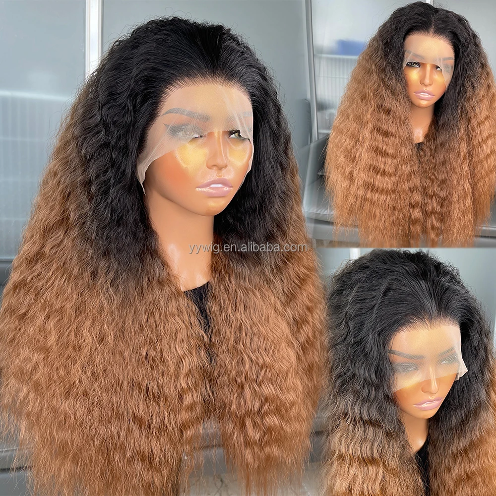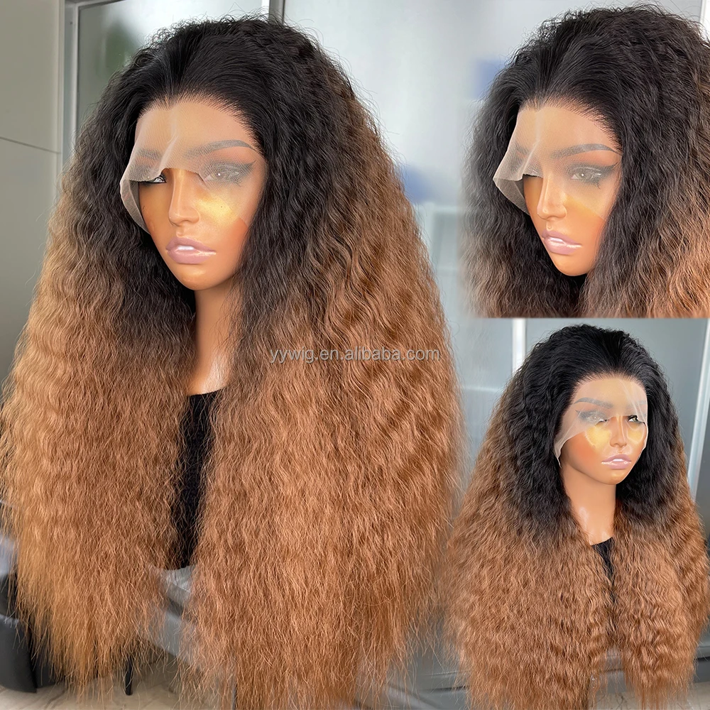 Long Ombre Brown Color Kinky Straight 13X6 Synthetic Lace Front Wigs for Black Women Futura Fiber Hair Heat Resistant Hair Wigs
