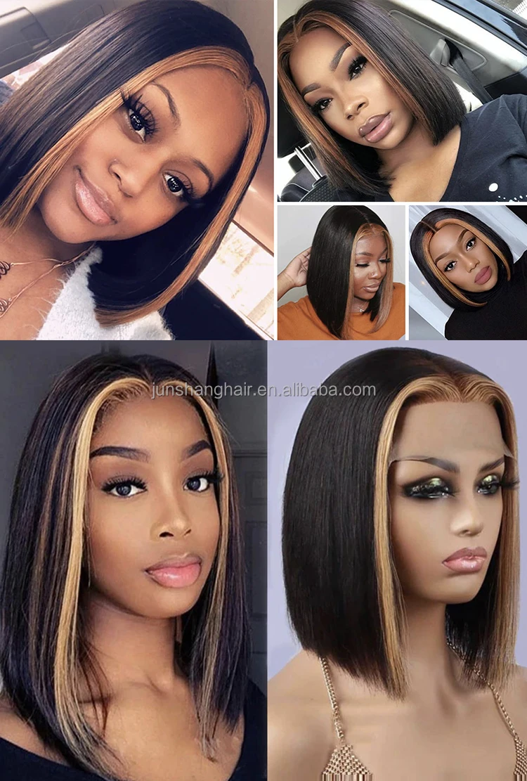 Wholesale Prices Custom logo Heat Resistant Synthetic Hair Frontal Short Wigs Silky Straight Wave bob Wigs for Black Women bob