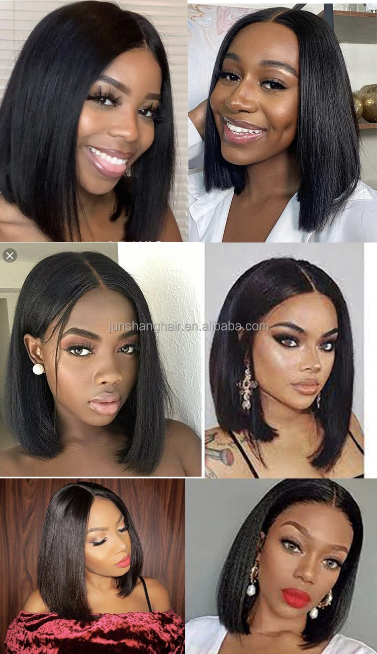 Wholesale prices custom logo Heat Resistant Synthetic hair frontal short wigs silky straight wave bob wigs for black women bob