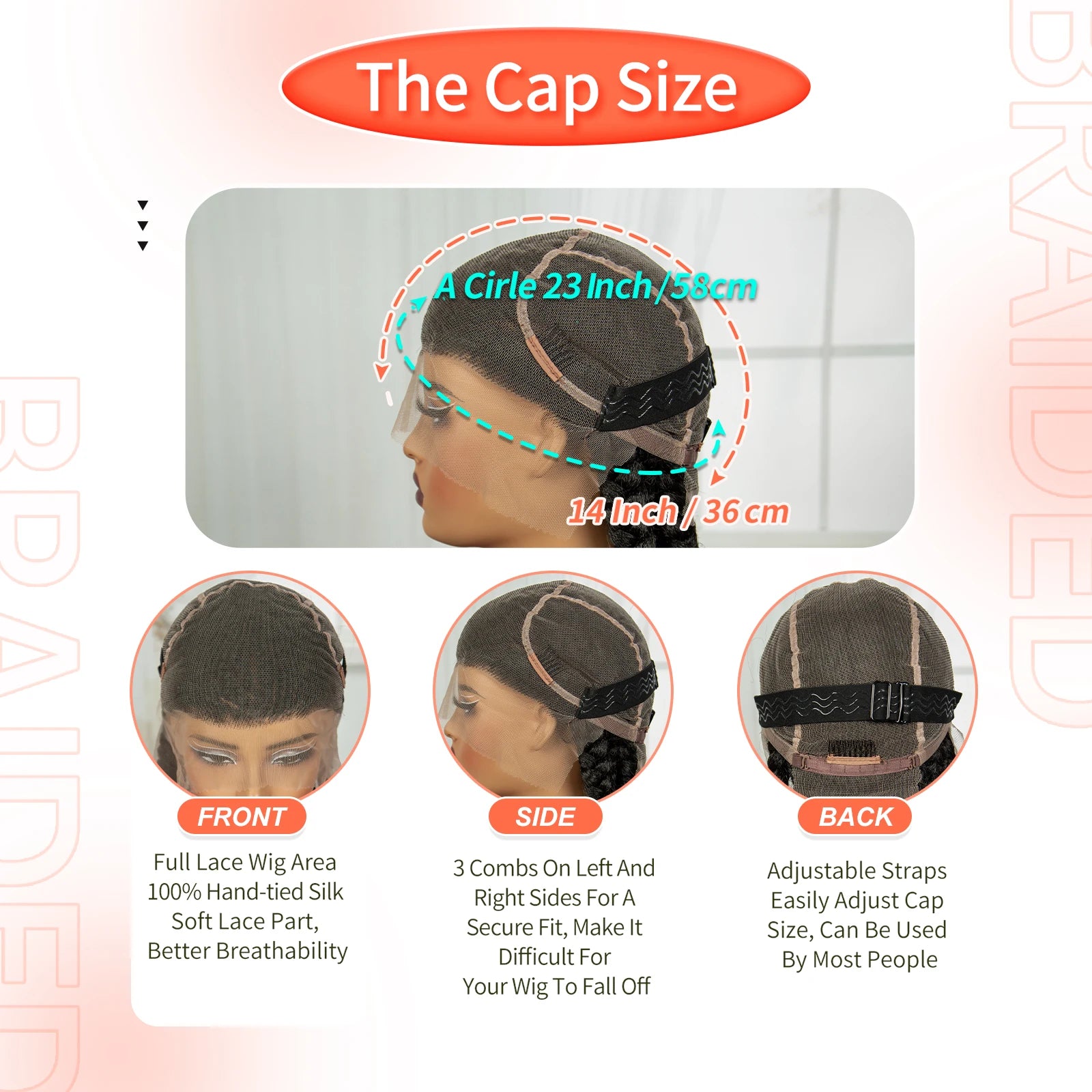 32INCH Cornrow Braided Wigs Synthetic Full Lace Braids Wig with Baby Hair Lace Frontal Knotless Braided Lace Wig for Black Women