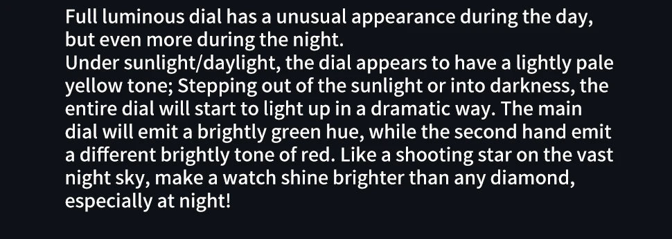 3.Red Luminous Seconds Hand with a C3 Super Luminous watch dial