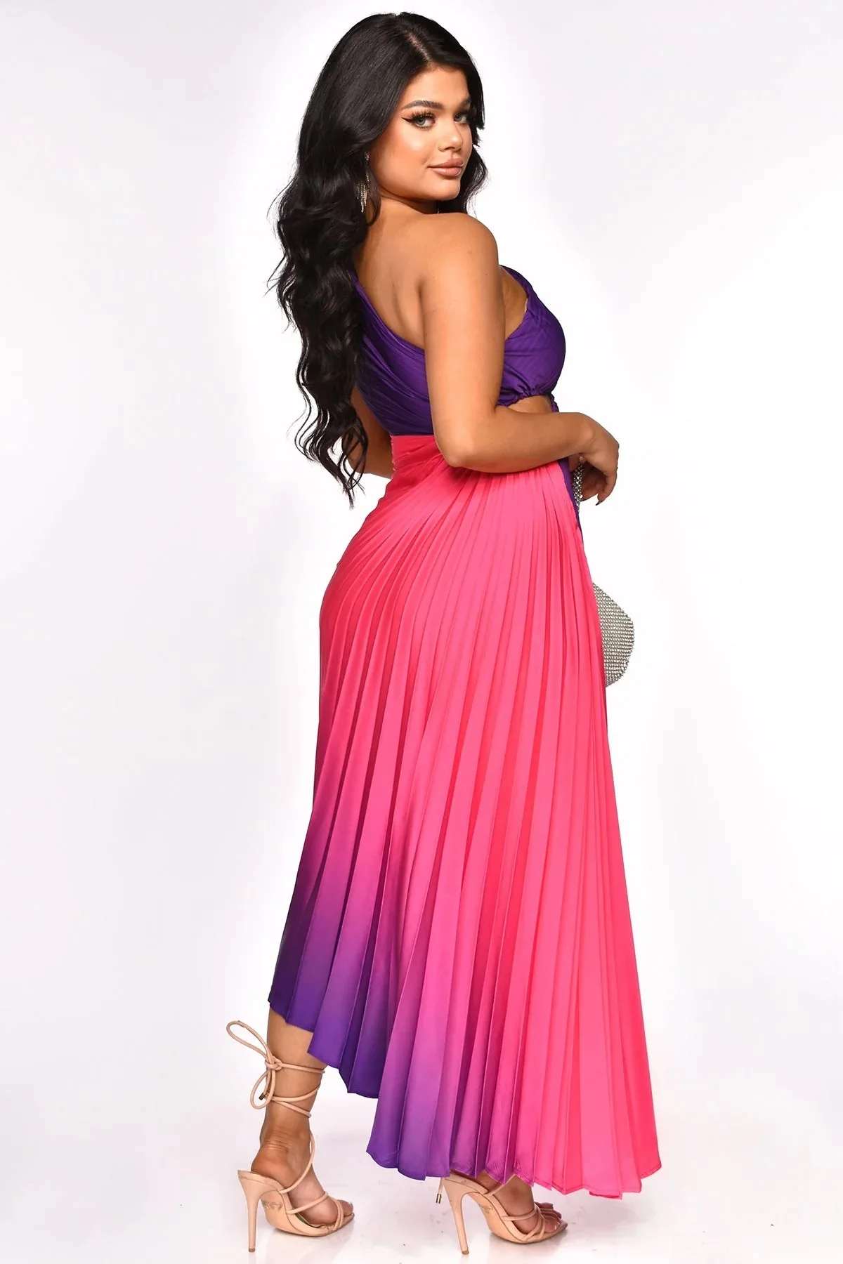CM.YAYA Women Gradient Printed Pleated One Shoulder Roll Waist Maxi Irregular Big Swing Dress 2023 Sexy Party Vestidos Dresses