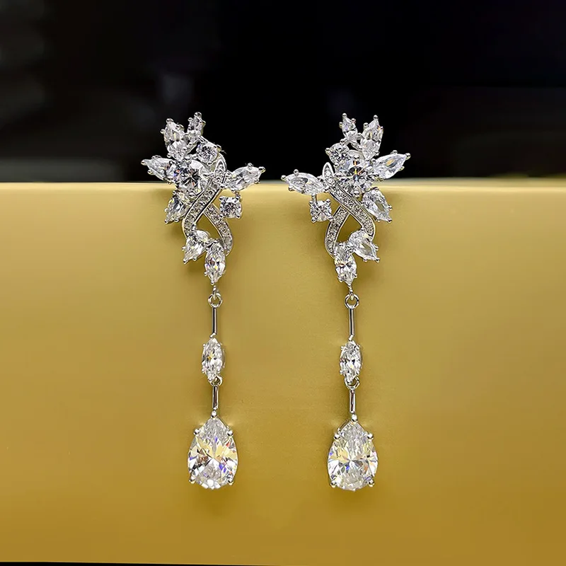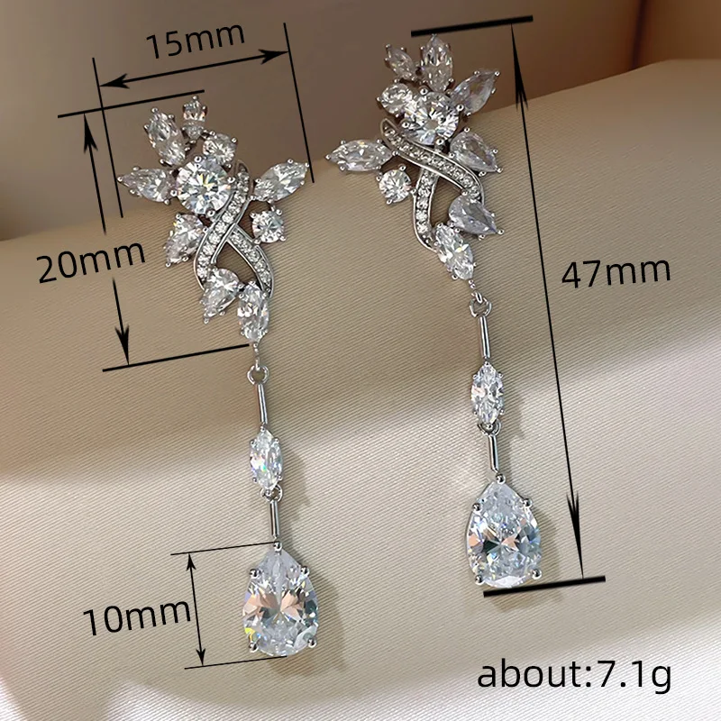Delicate Female Earrings 925 Sterling Silver Zircon Long Hanging Earrings Women Water Droplet Shaped Horse Eye Ear Jewelry Gift