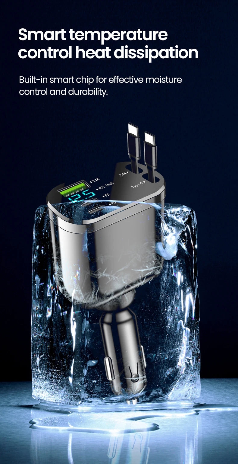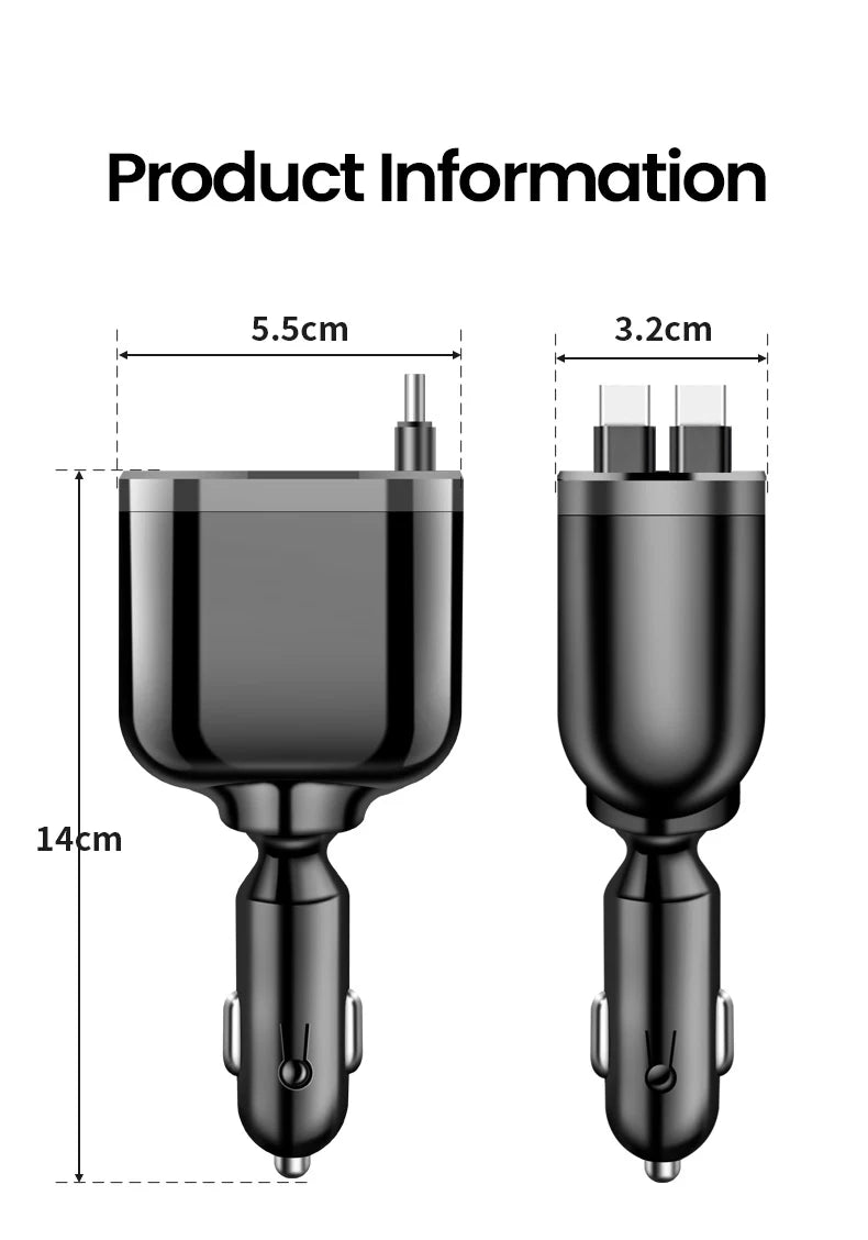 Elough Retractable Car Charger 5 in 1 Fast Charging Car Charger Retractable Cable 2 type c Ports Car Charger Adapter Compatible