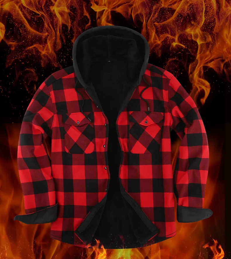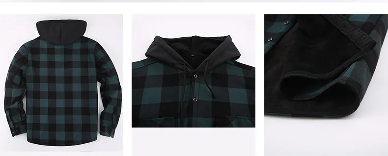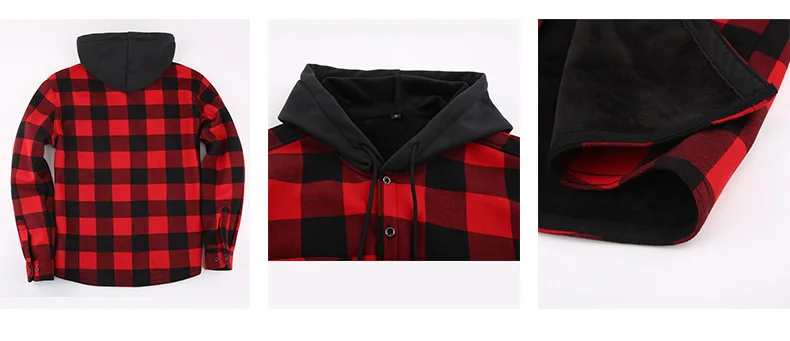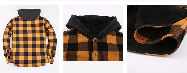 Fashion korean popular clothes winter Adding velvet and thickening long-sleeve shirts for men casual Hooded jacket plaid tops