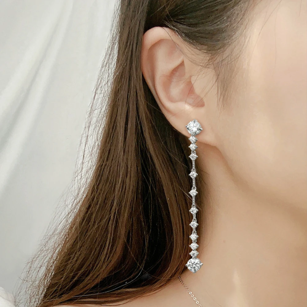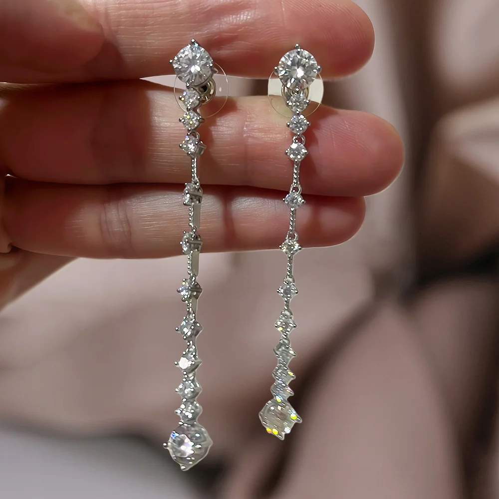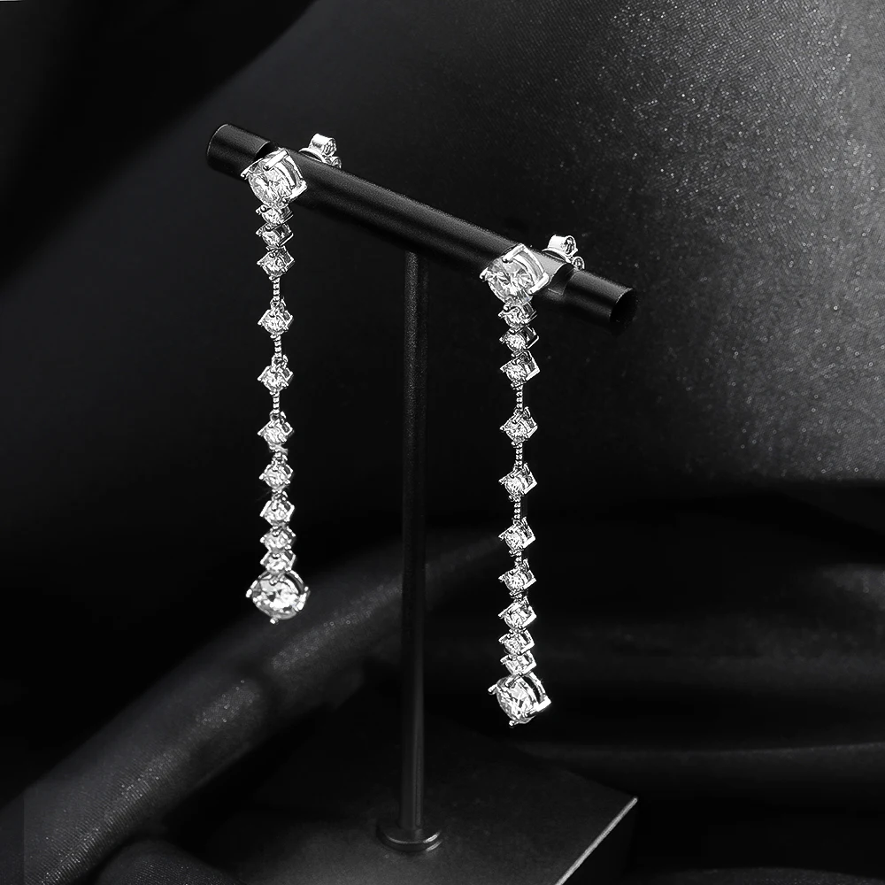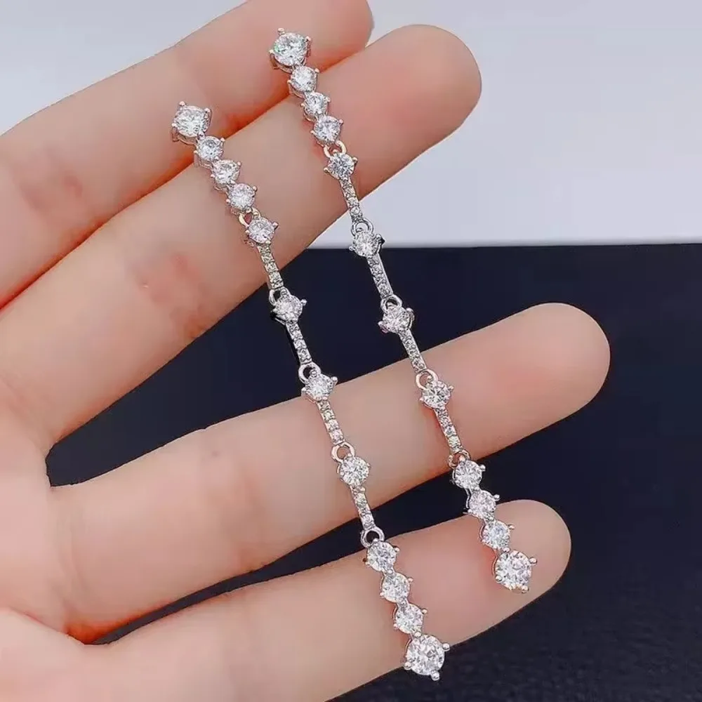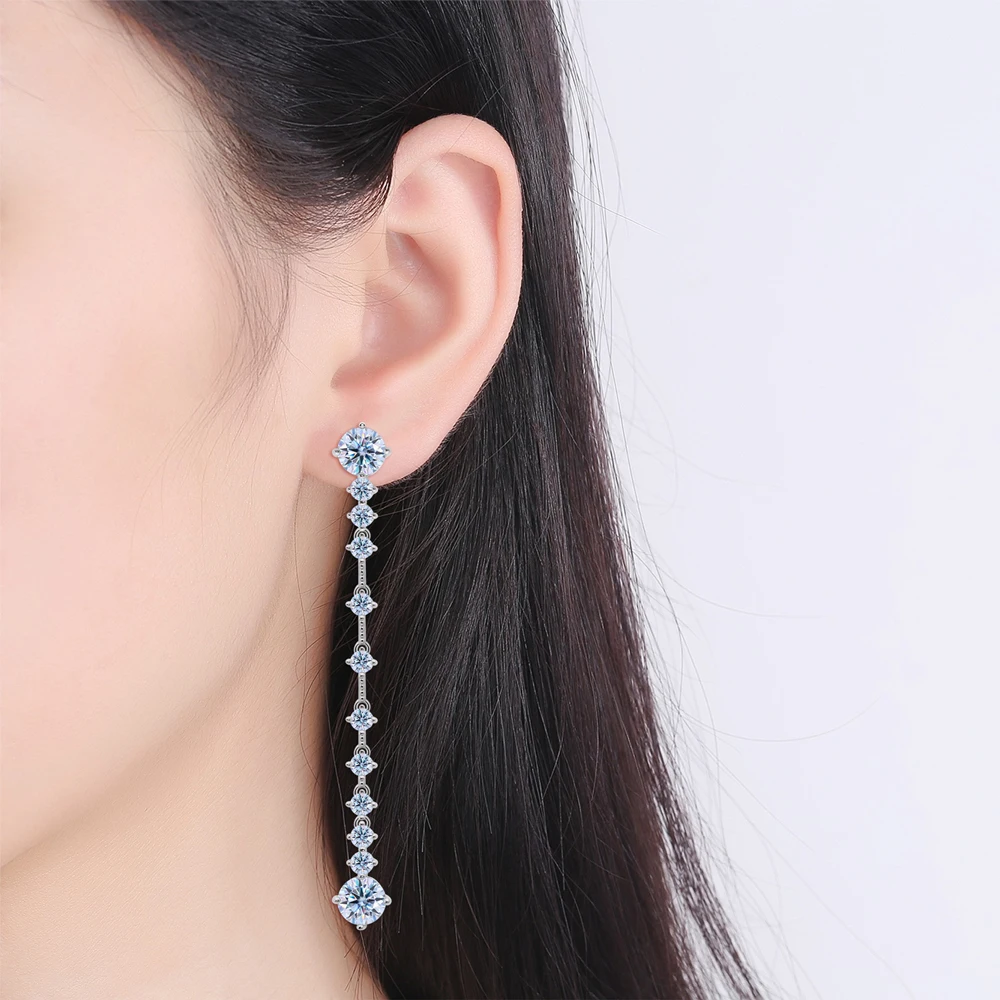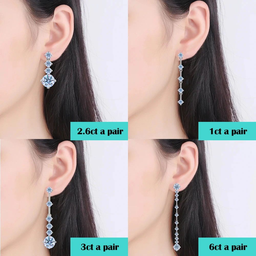 FEOBUR 3/6cttw Full Moissanite Drop Earrings for Women 925 Sterling Silver Lab Diamond Long Earring Bridal Wedding Jewelry GRA