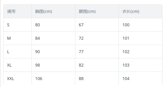 size_info: {"sizeInfoList":[{"length":{"cm":"80","inch":"31.50"},"size":"S","vid":-1},{"length":{"cm":"84","inch":"33.07"},"size":"M","vid":-2},{"length":{"cm":"90","inch":"35.43"},"size":"L","vid":-3},{"length":{"cm":"98","inch":"38.58"},"size":"XL","vid":-4},{"length":{"cm":"106","inch":"41.73"},"size":"XXL","vid":-5}]}