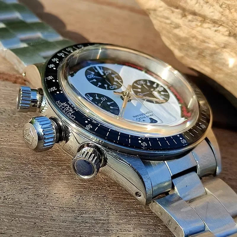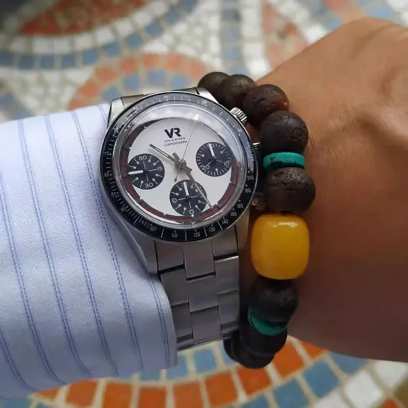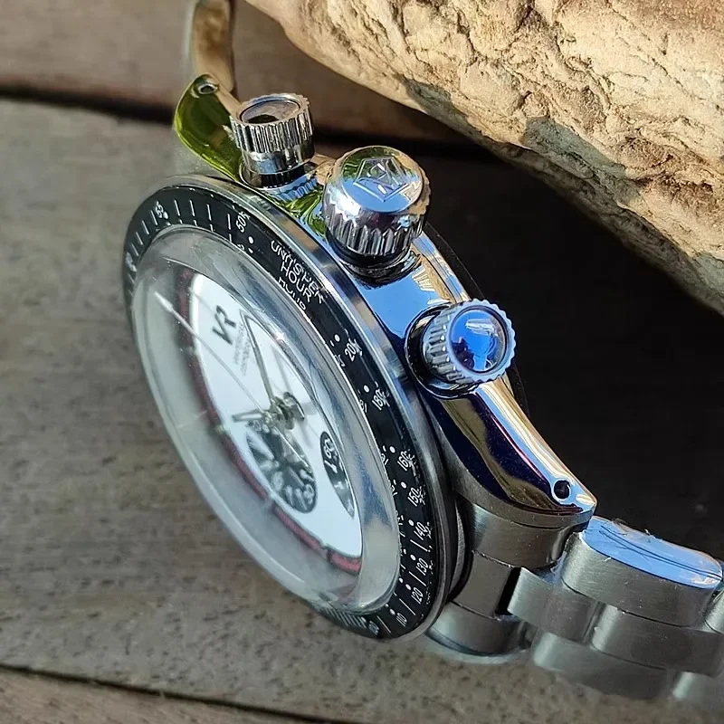 Vakuy Men's 38MM Quartz Watch Sweep Seconds Jinggong VK63A Chronograph Vintage Panda Di Men's Watch