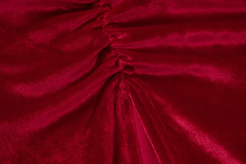 Women Elegant Long Sleeve Party Evening Velvet Bodycon Split Pencil Midi Dress Spring Autumn Clothes