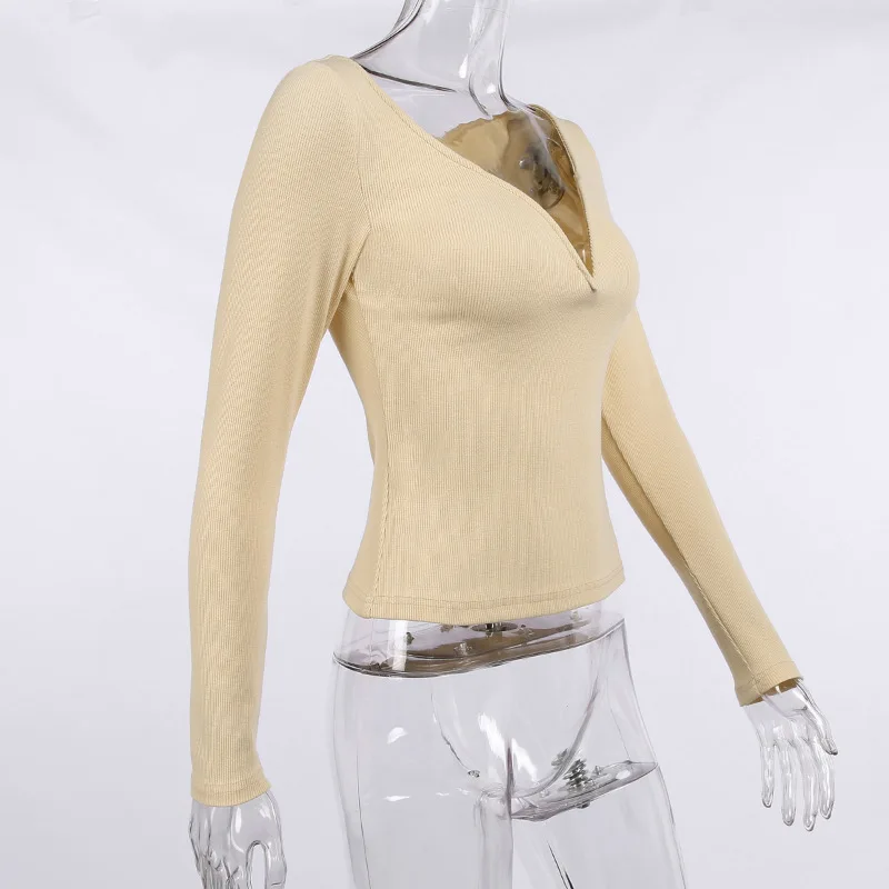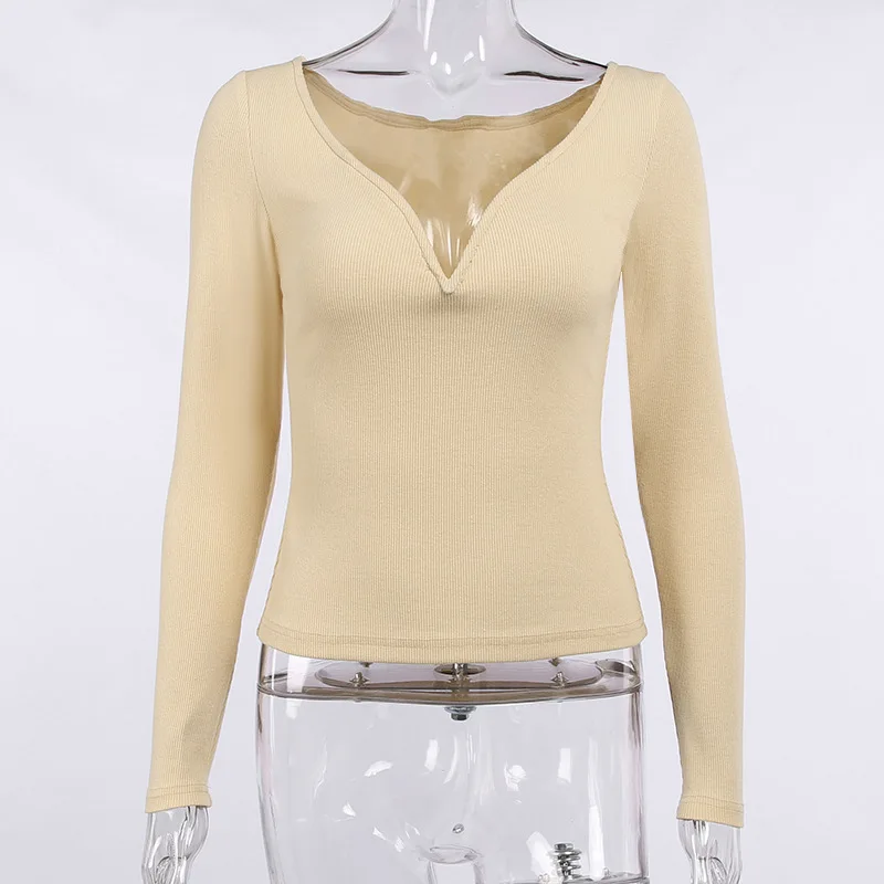 Women Sexy V Neck Solid Color Skinny Long Sleeve T Shirt Blouse Top Knitwear Elegant Casual High Street Club Party Harajuku High