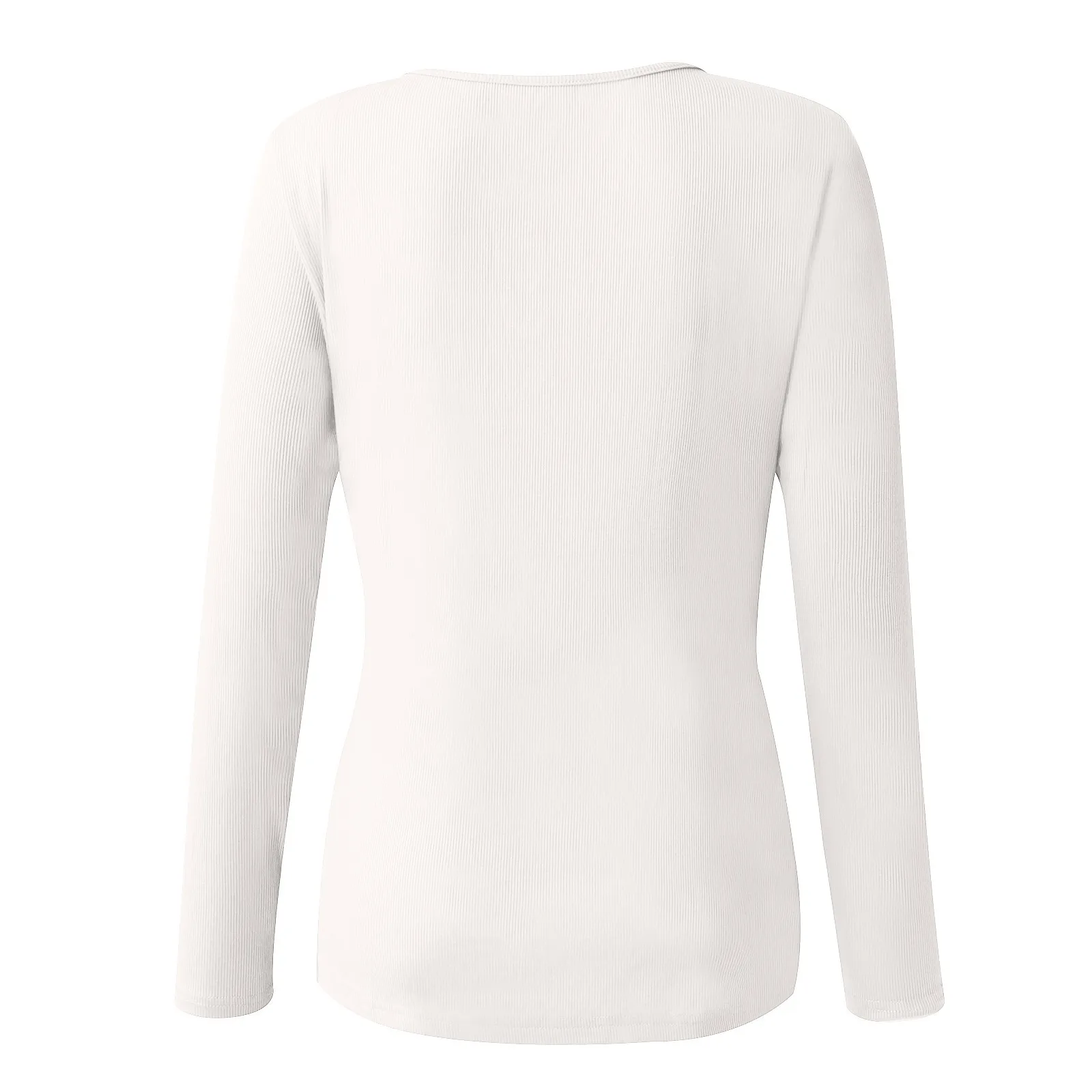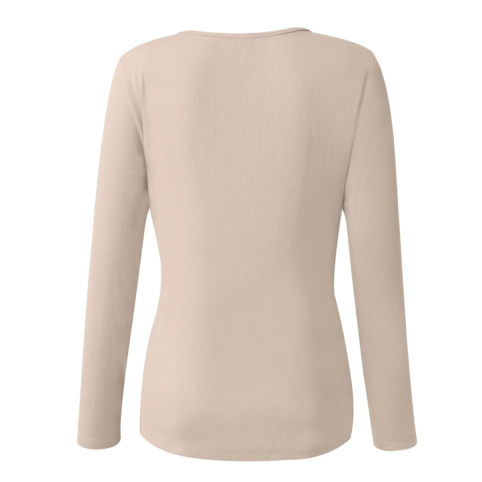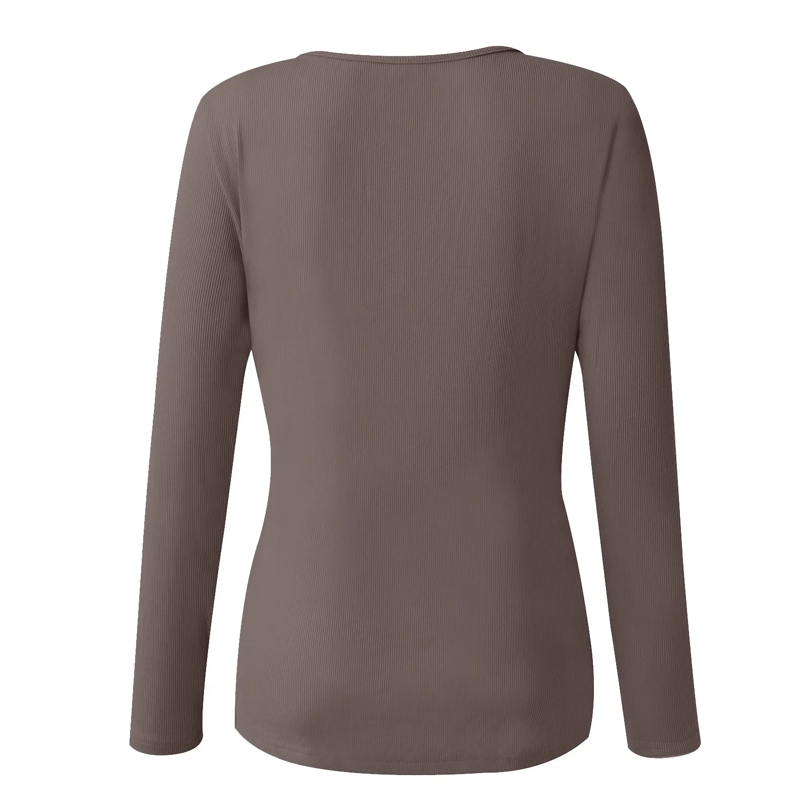 Women'S Button Color V-Neck Long Sleeve T-Shirt Top Blouse Tee Solid Color Sexy Slim Spring Autumn Lady Button Knit Top Women So
