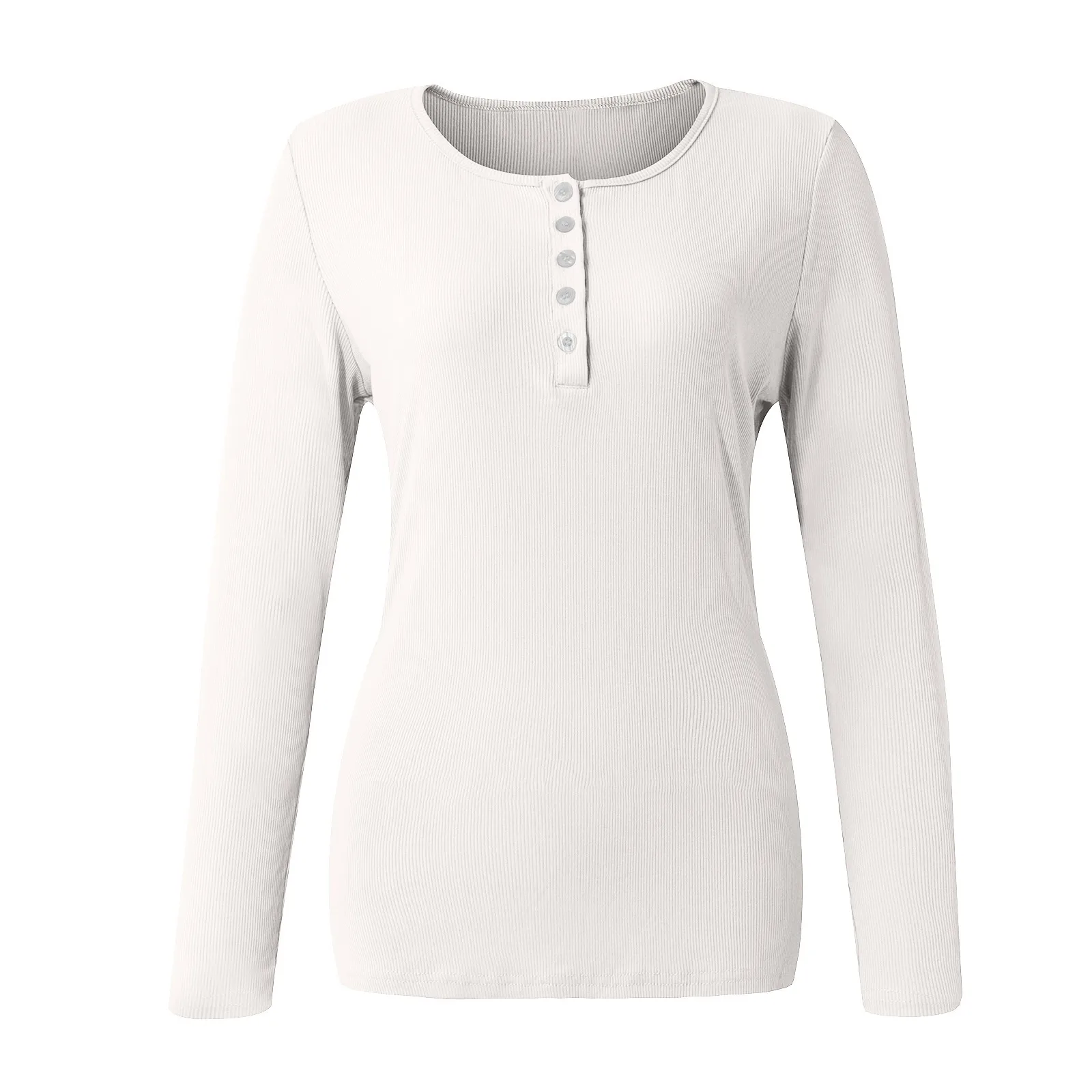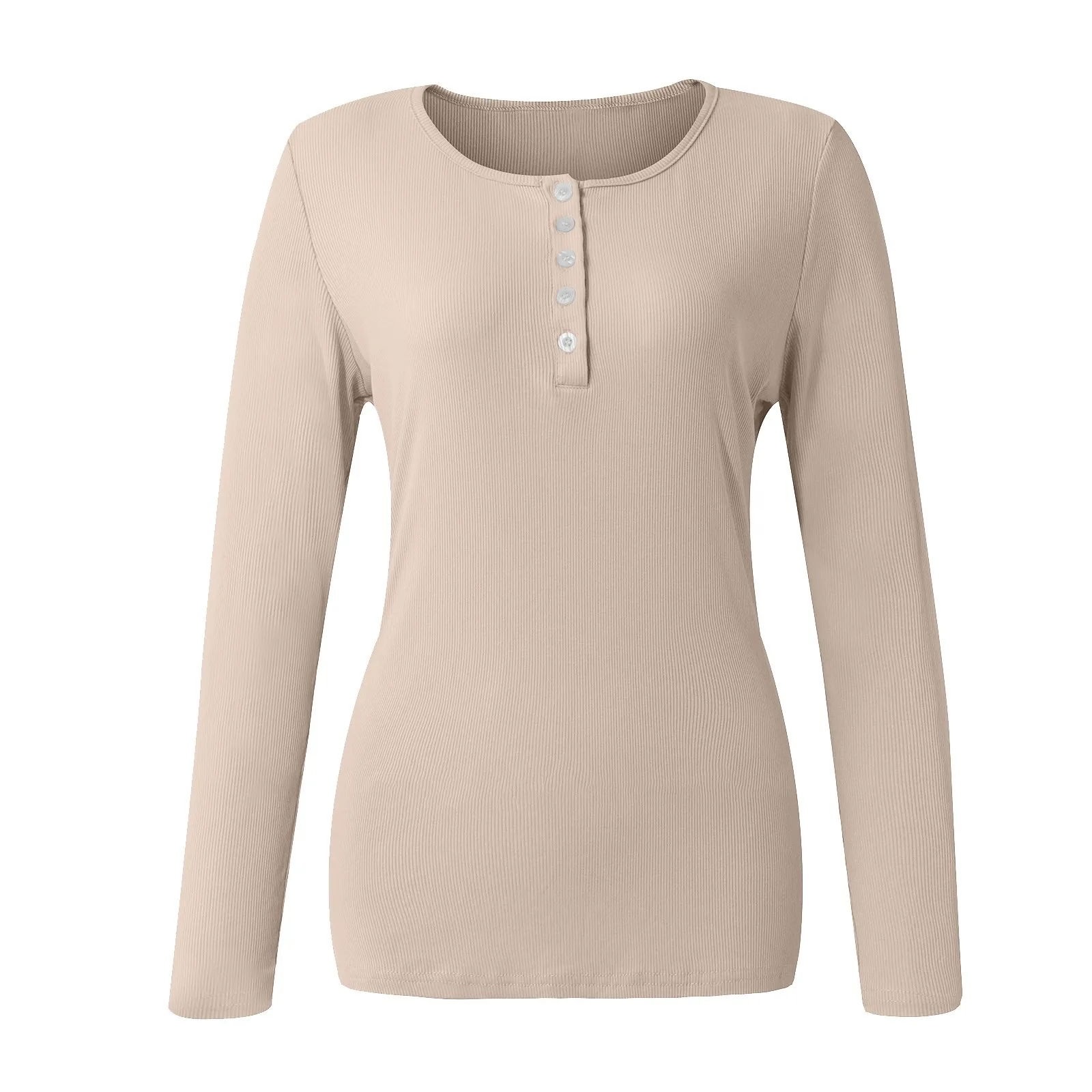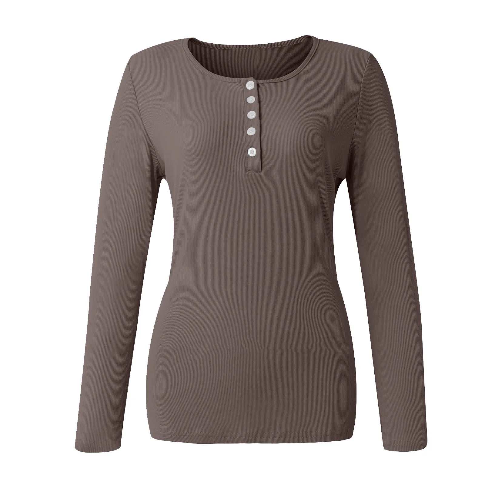 Women'S Button Color V-Neck Long Sleeve T-Shirt Top Blouse Tee Solid Color Sexy Slim Spring Autumn Lady Button Knit Top Women So