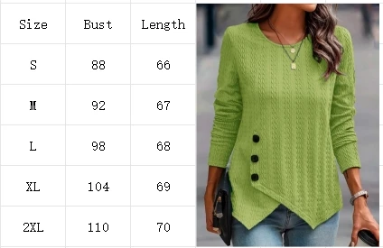 Women's Long Sleeve Round Neck Top Solid Color Button Jacquard T-Shirt Elegant Trend Autumn Top